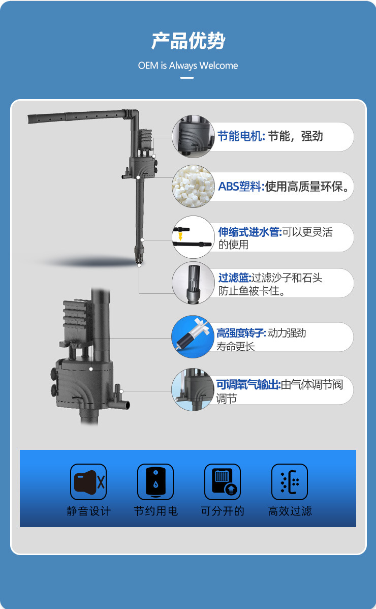 三合一鱼缸潜水泵顶部上过滤通用配套泵内置抽水泵增氧循环水族箱