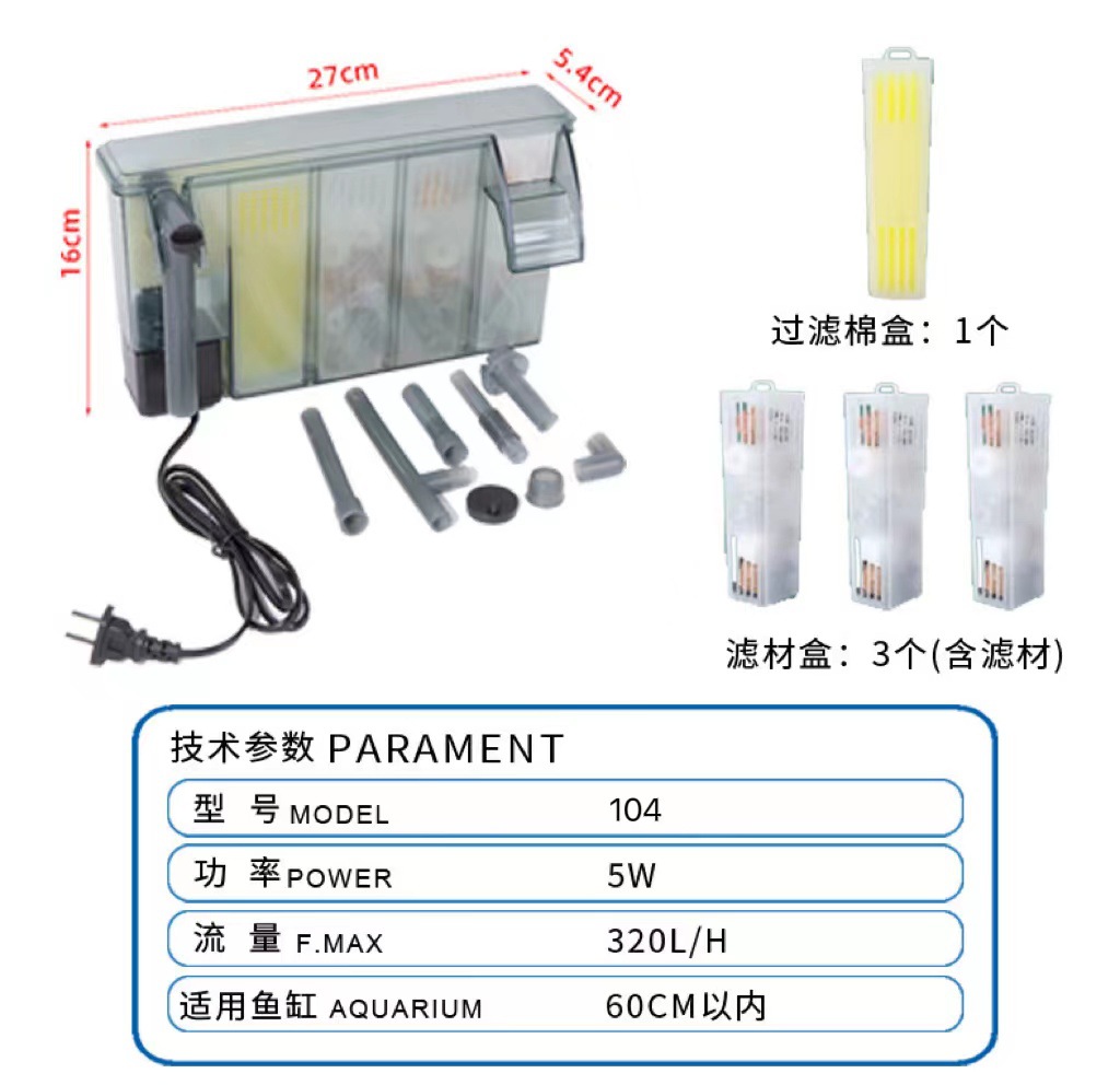 鱼缸过滤器壁挂过滤循环水泵增氧泵三合一瀑布式外挂过滤器水循环
