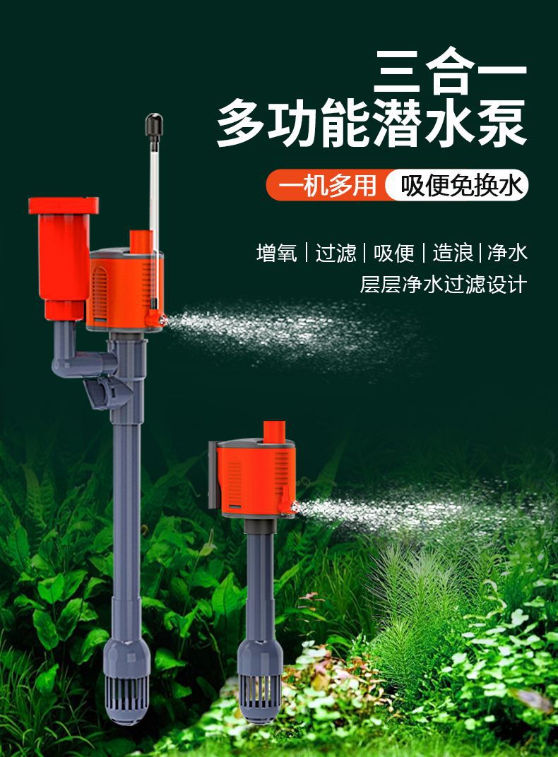 鱼缸超静音潜水泵水族箱三合一上滤抽水循环泵增氧泵过滤器