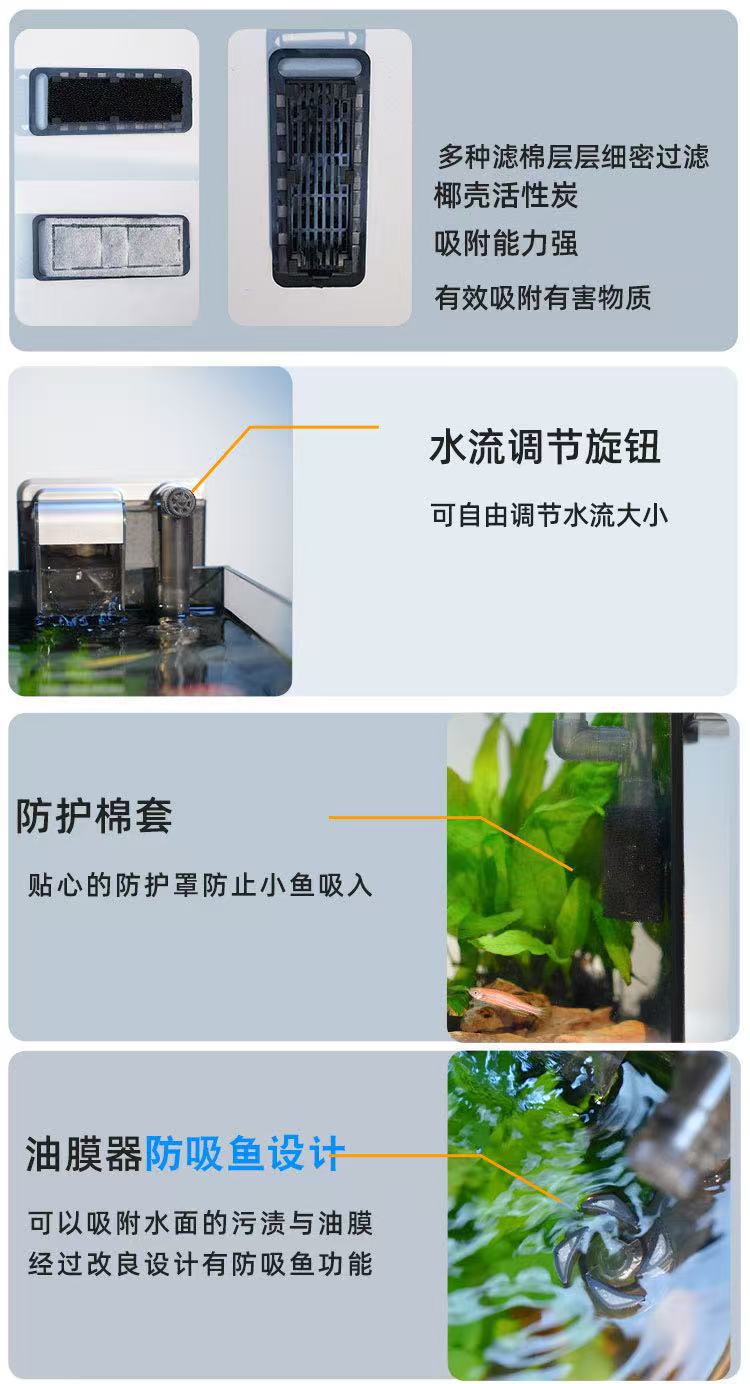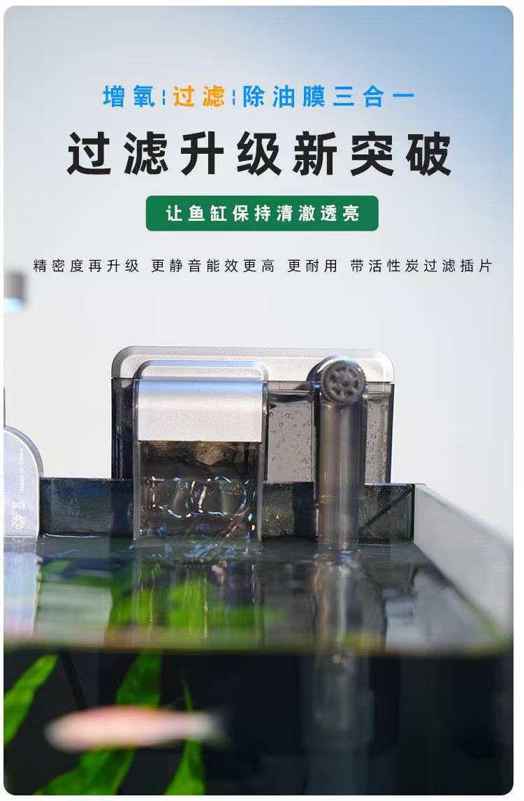 小鱼缸过滤器净水循环三合一水泵制氧小型瀑布式静音外置壁挂式