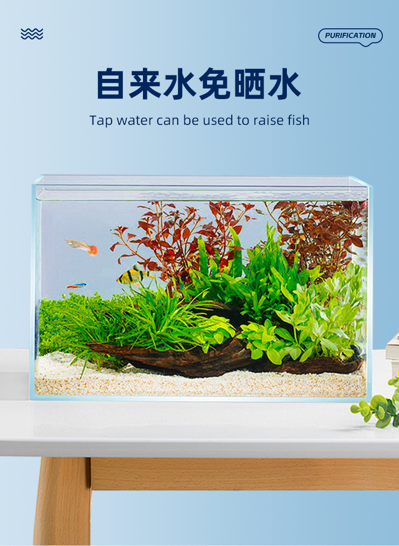 鱼缸客厅新款透明过滤制氧一体机桌面造景摆件带灯带生态鱼缸