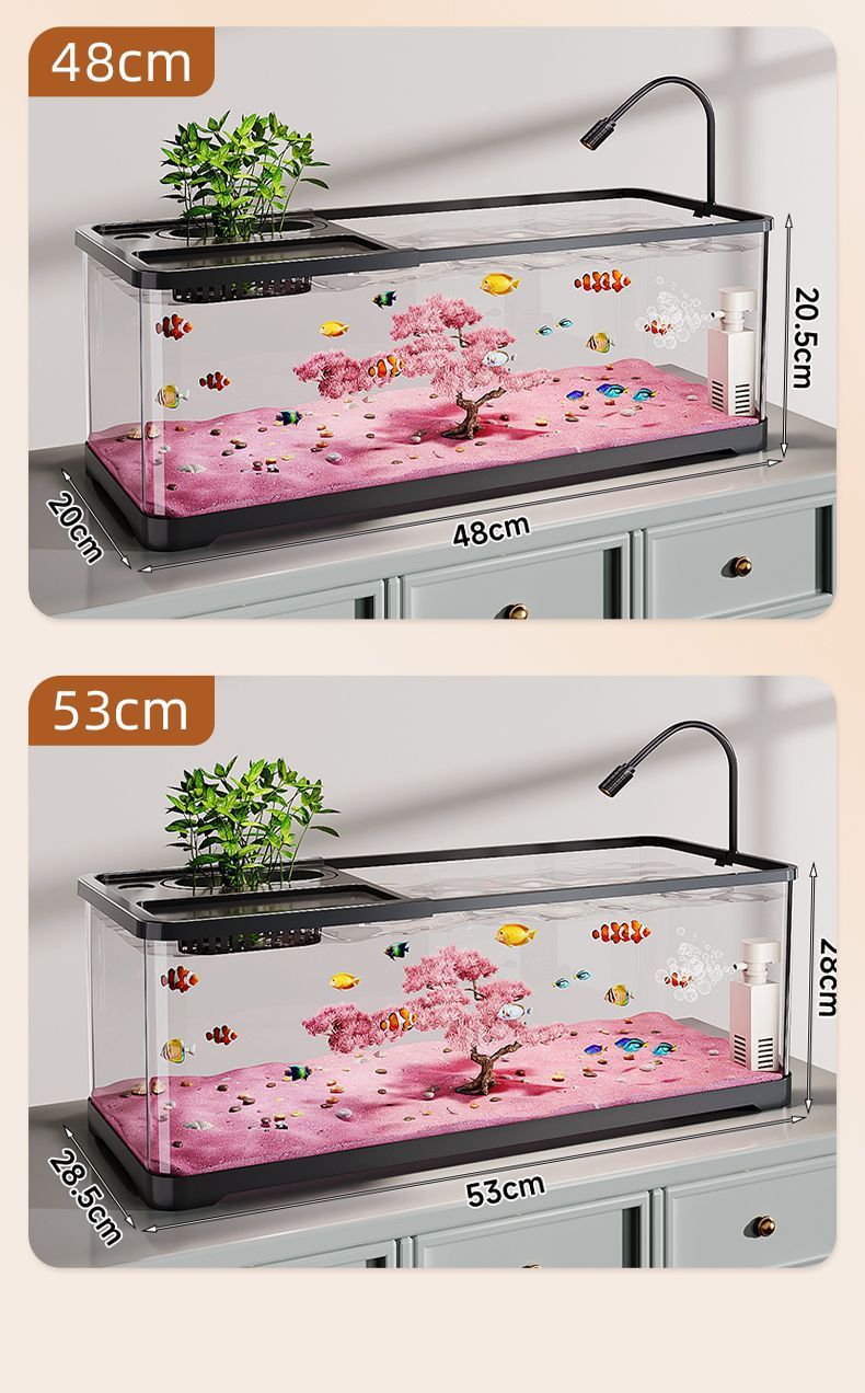 小型水族箱客厅樱花造景鱼缸全套生态桌面养鱼缸办公室带盖乌龟缸