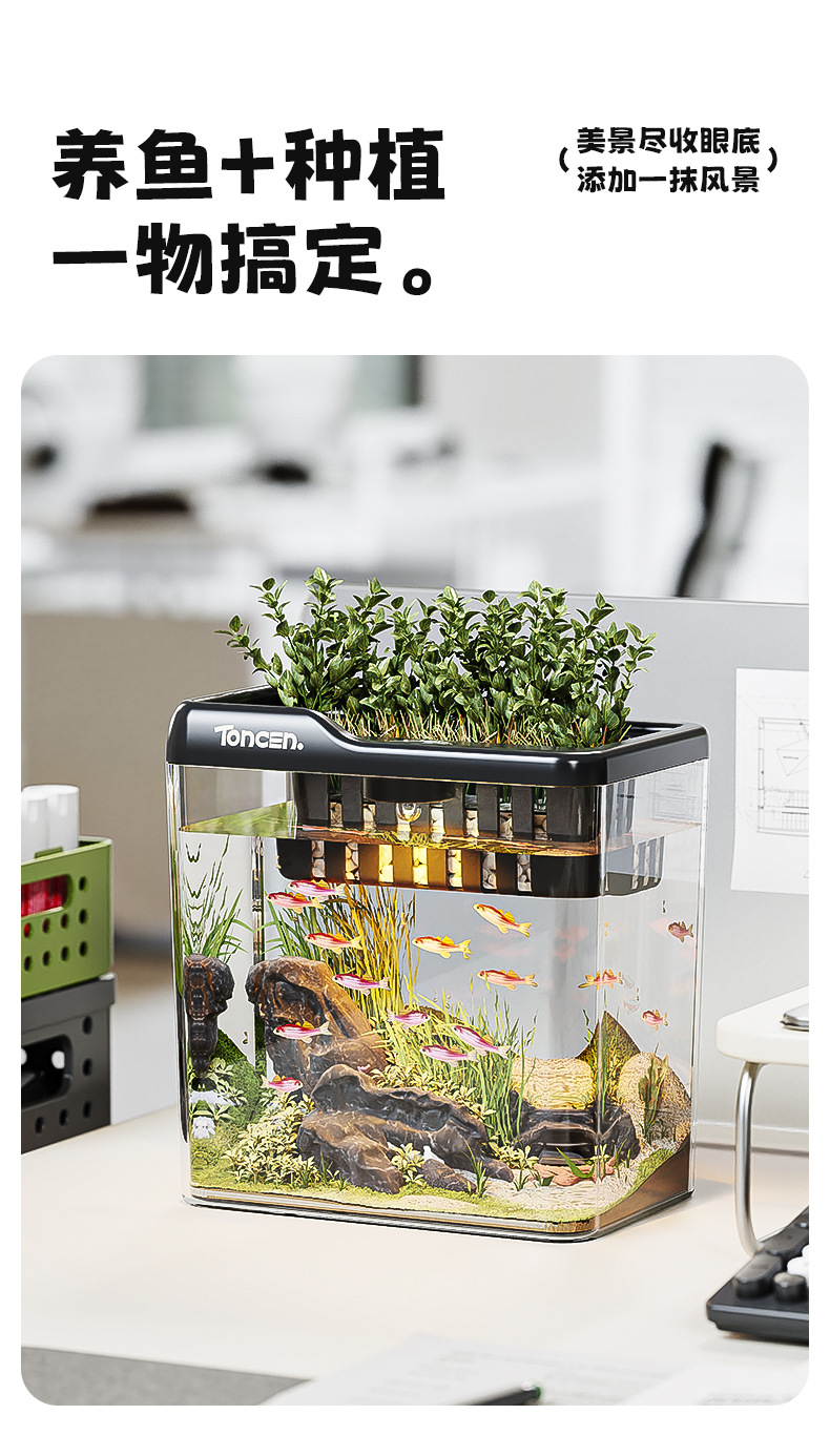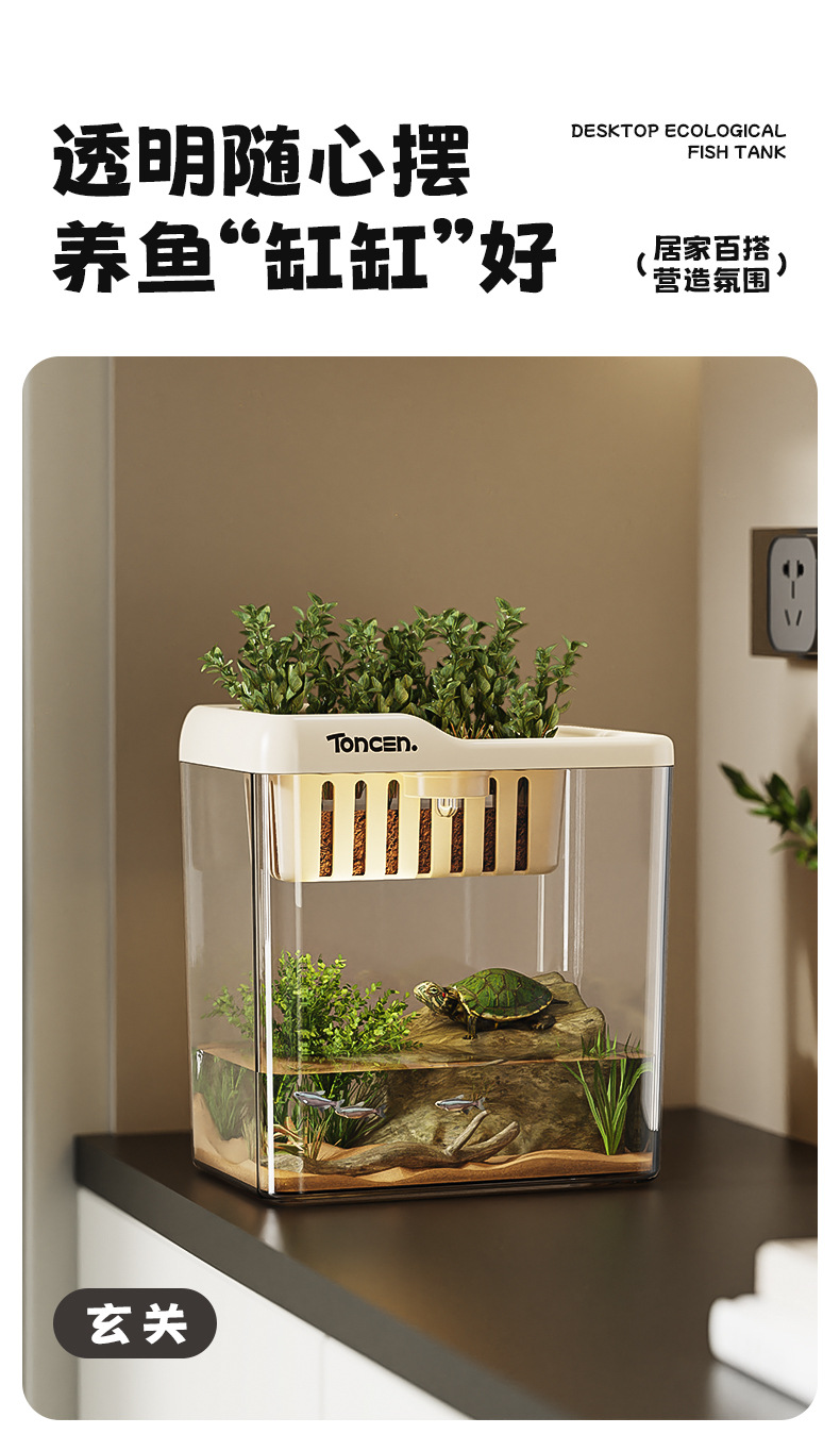 透明塑料耐摔防碎桌面鱼缸创意生态造景乌龟缸水族箱办公室生态缸