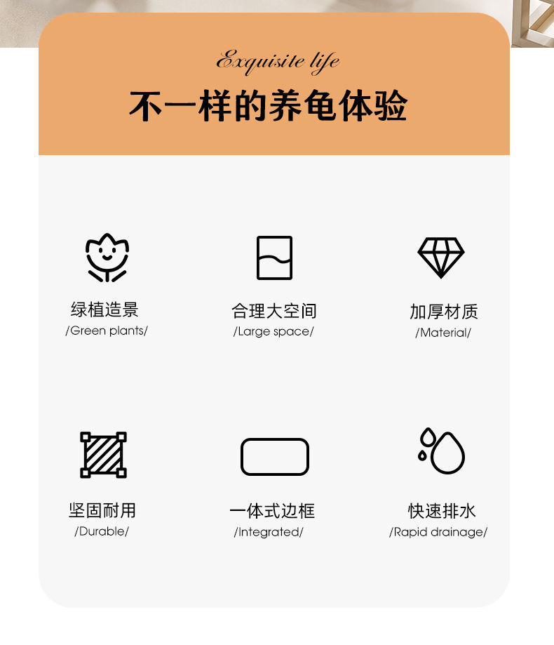 乌龟龟缸晒台家用生态造景别墅饲养巴西龟排水专用专用箱小型鱼缸