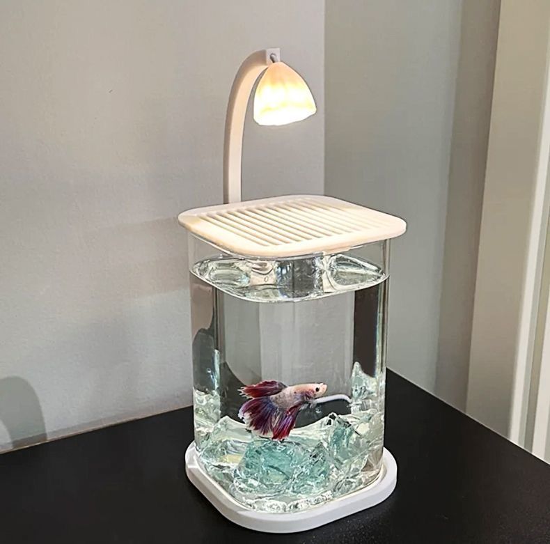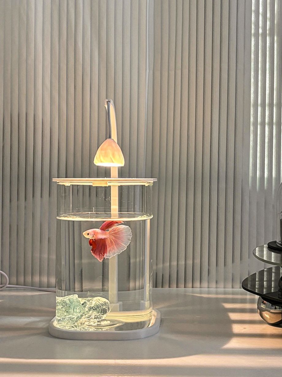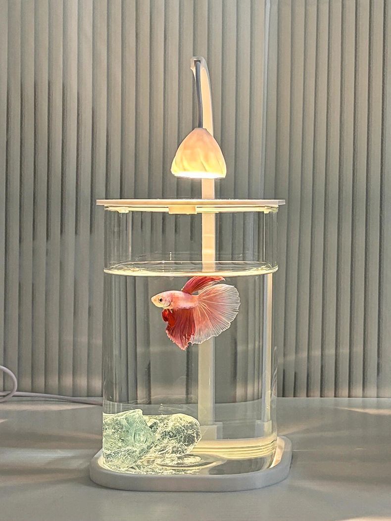 亚克力小鱼缸冰晶石桌面创意缸生态斗鱼缸珍珠碎钻景观缸造景全套