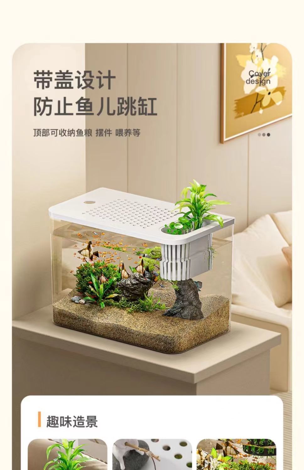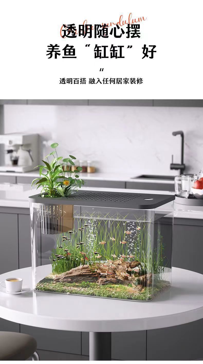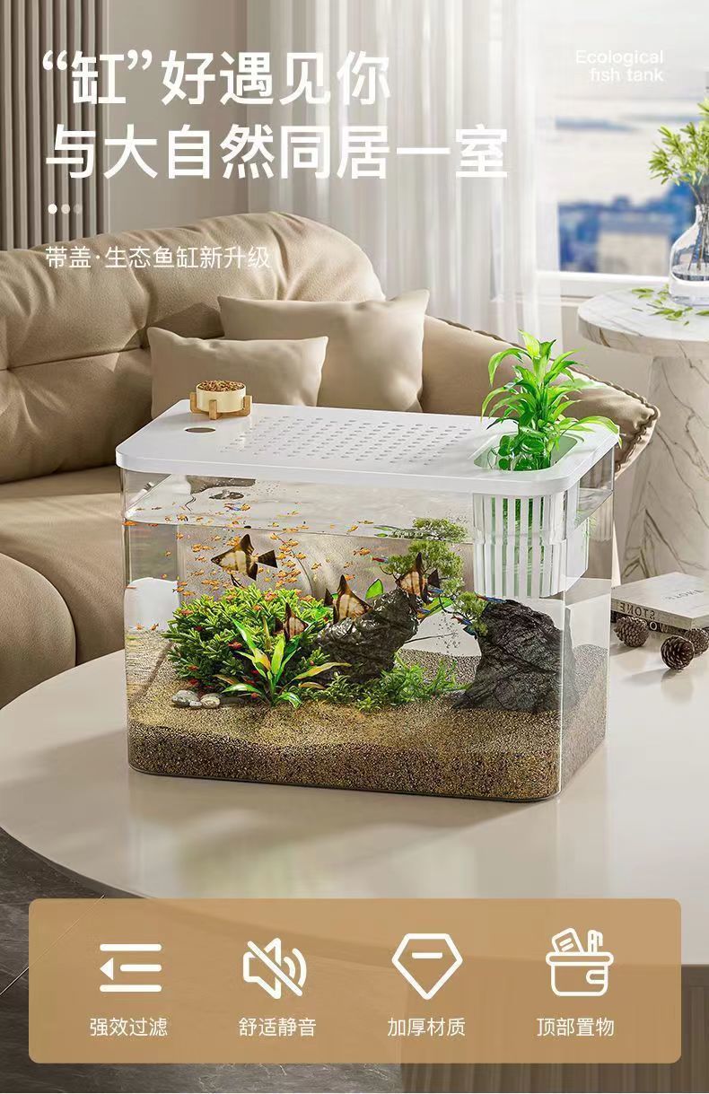 鱼缸水族箱桌面生态金鱼缸塑料高透明家用客厅造景中小型懒人