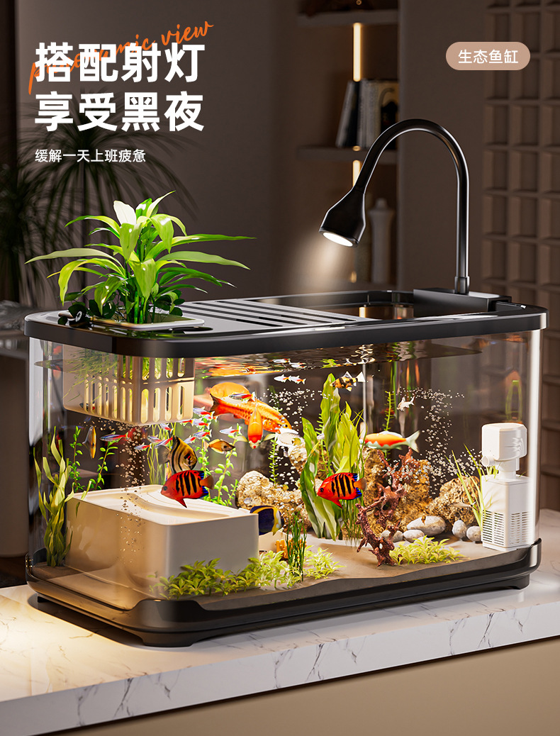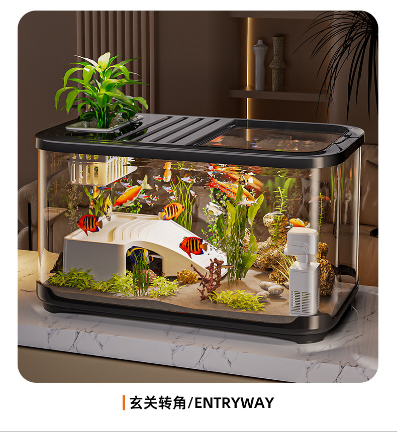 透明鱼缸家用新款创意带盖高清金鱼缸桌面养鱼观赏摆件客厅水族箱