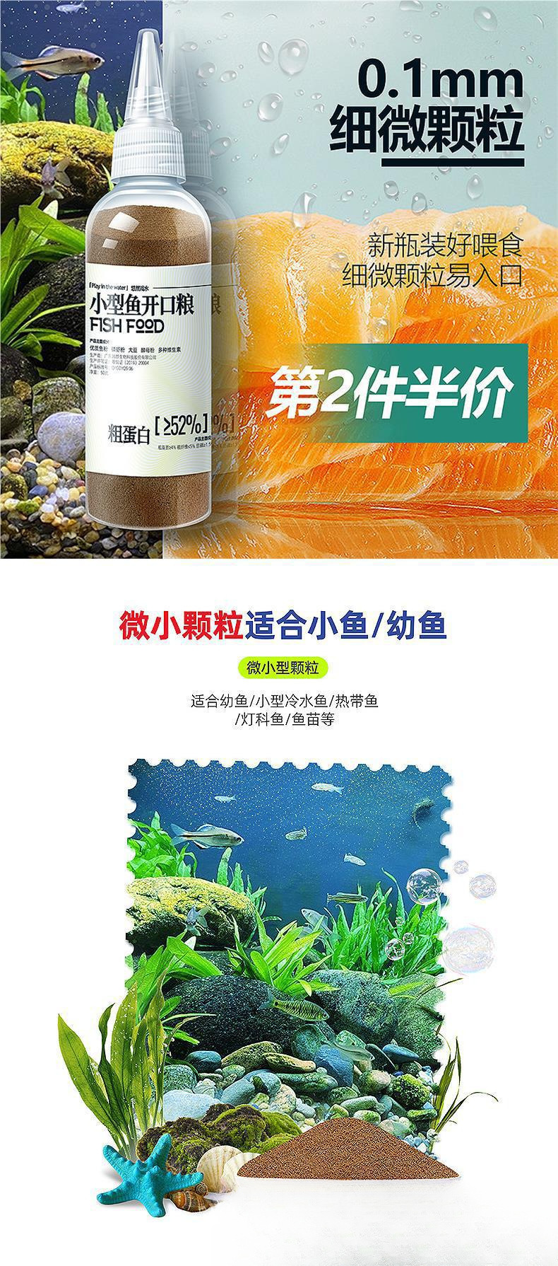 鱼粮小型鱼饲料小颗粒孔雀鱼食观赏鱼幼鱼苗鱼儿开口粮丰年虾家用