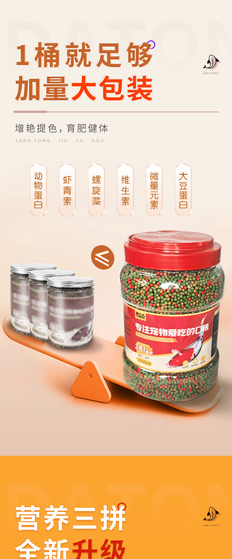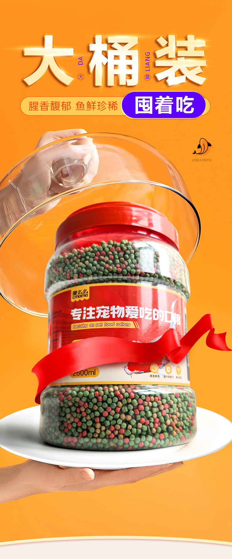 鱼食金鱼锦鲤鱼饲料小颗粒鱼粮观赏鱼家用小金鱼大桶上浮型鱼饲料