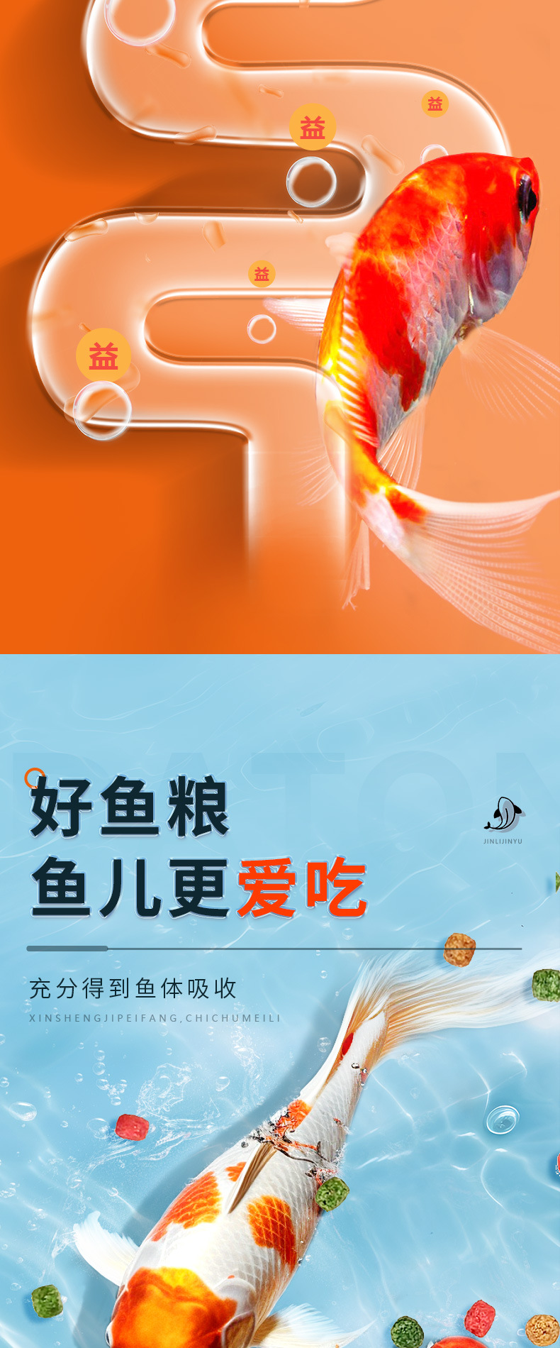 通用型观赏鱼粮食锦鲤饲料小型热带草金鱼招财家用上浮小颗粒