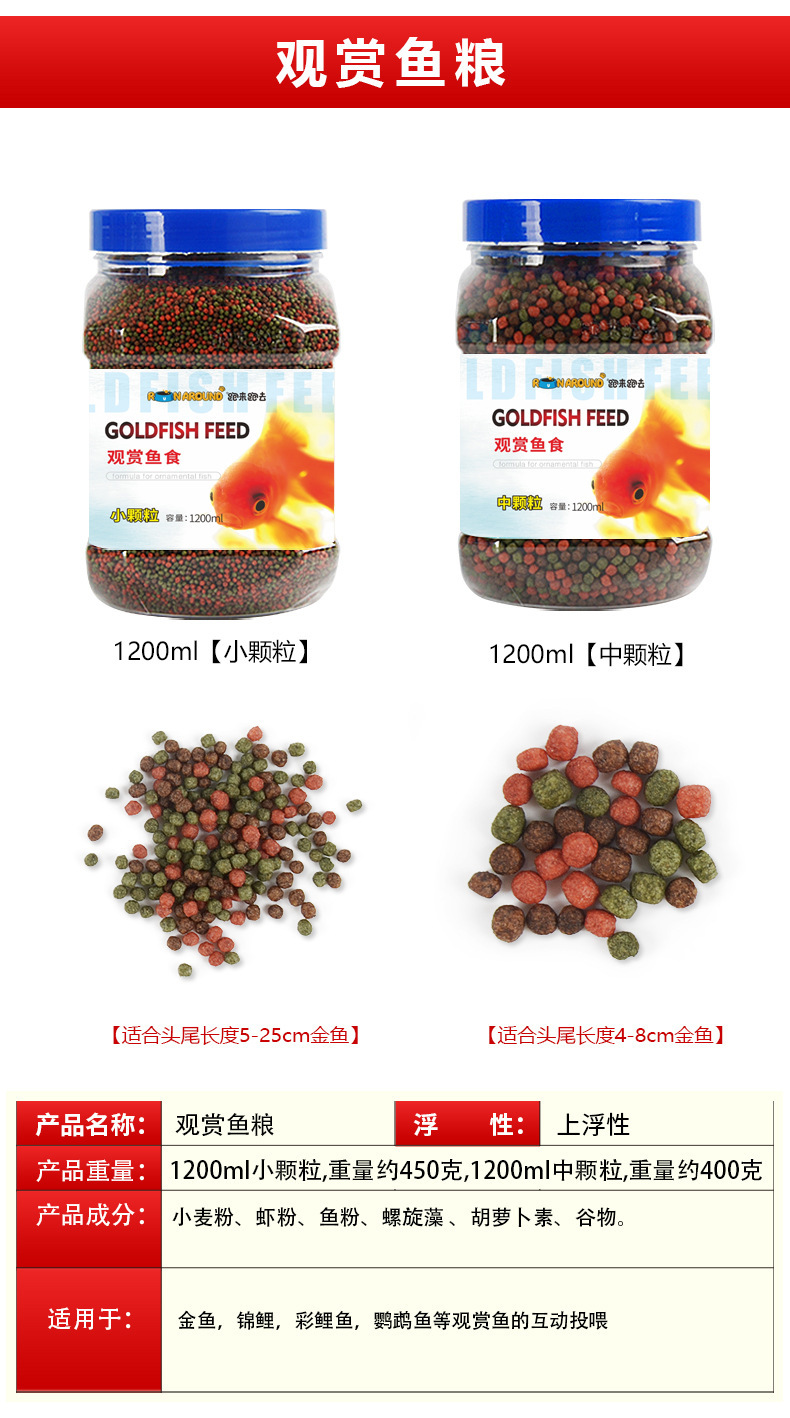 锦鲤鱼饲料金鱼饲料鱼粮原色观赏鱼食小型鱼饲料鱼粮不浑水1200ML