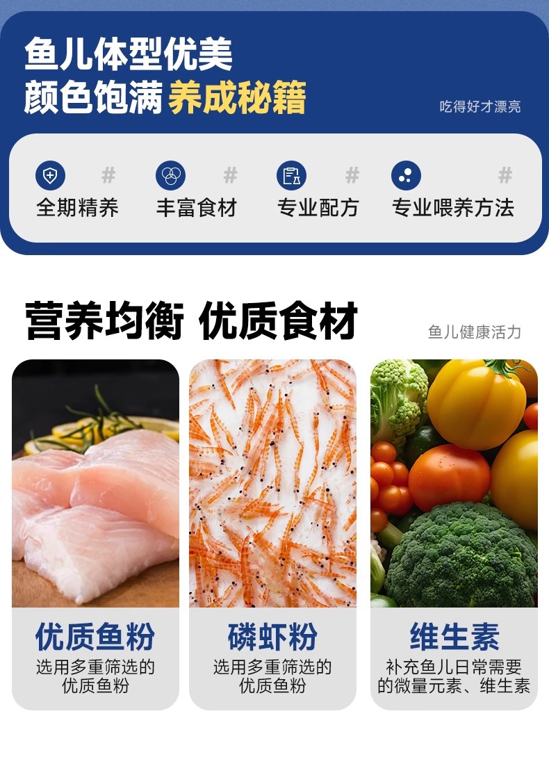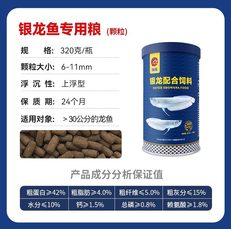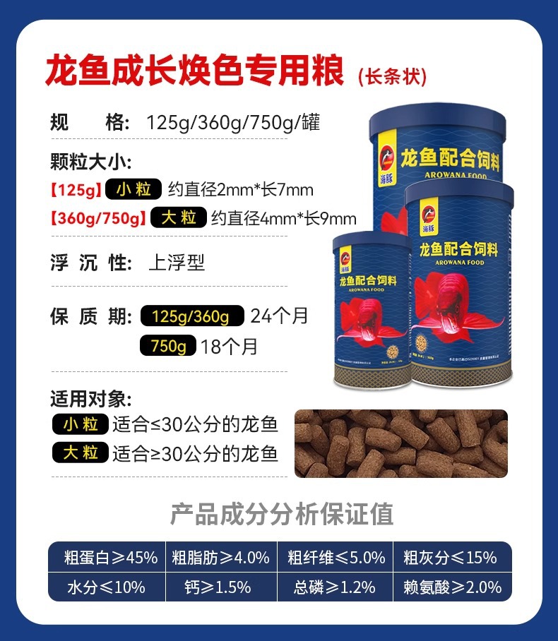 海豚龙鱼饲料专用鱼食慈鲷蝴蝶锦鲤龙鱼七彩血鹦鹉金鱼粮颗粒增色