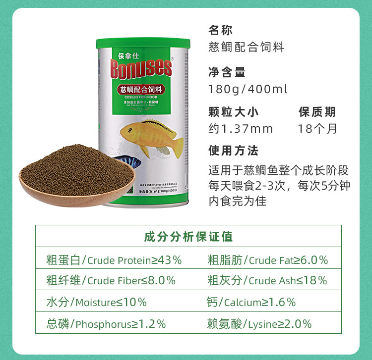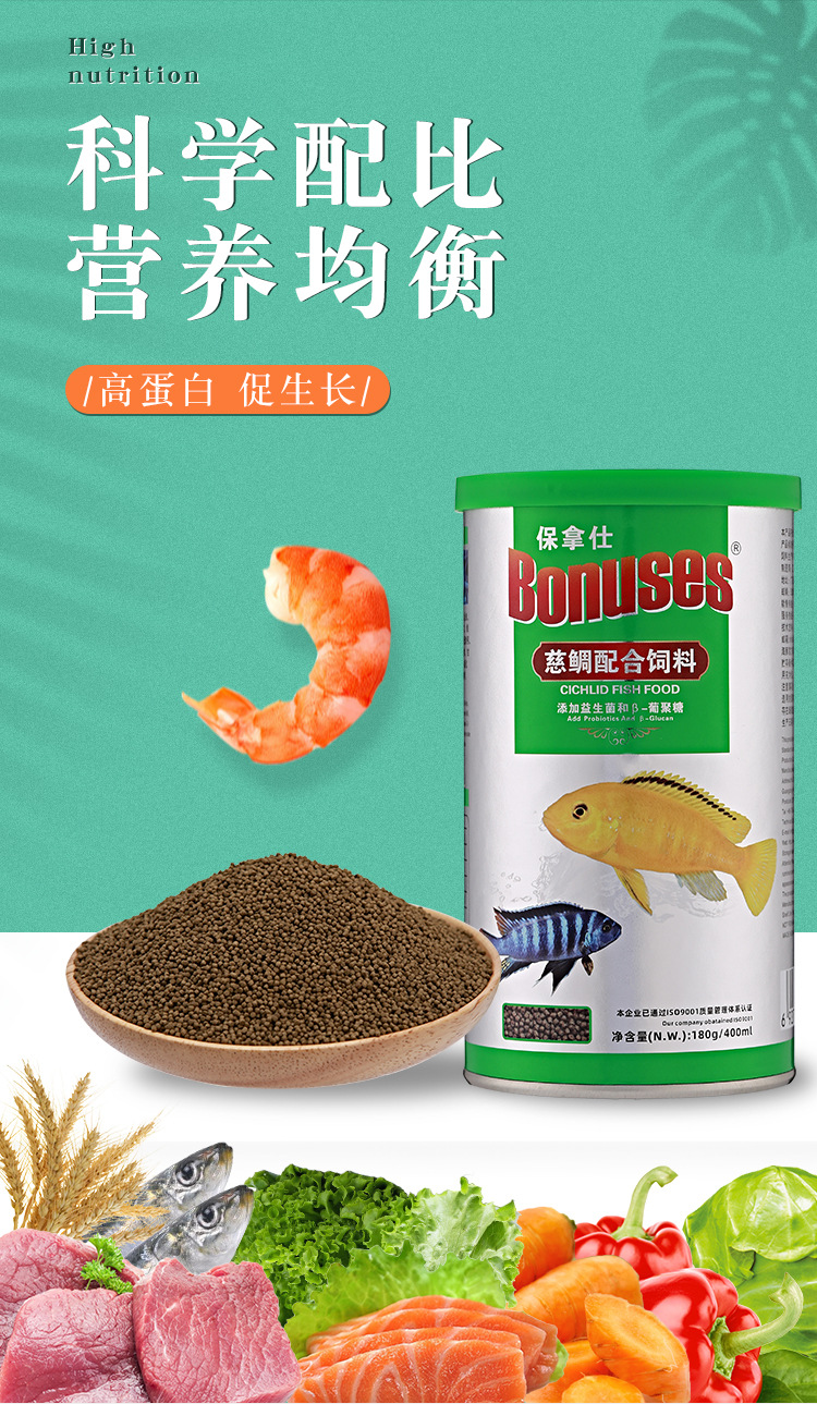 保拿仕400ml热带鱼薄片粮底栖下沉罗汉兰寿金鱼七彩慈鲷鱼食纸罐