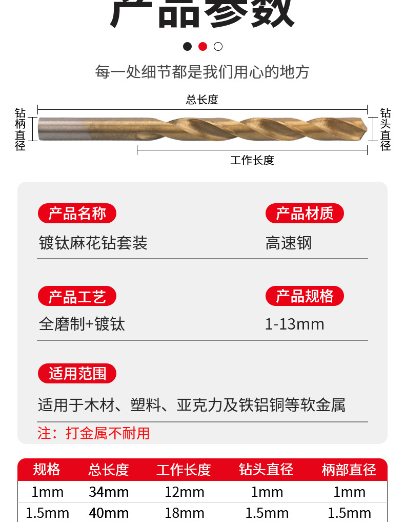 - 13pcs圆柄镀钛麻花钻【盒装】