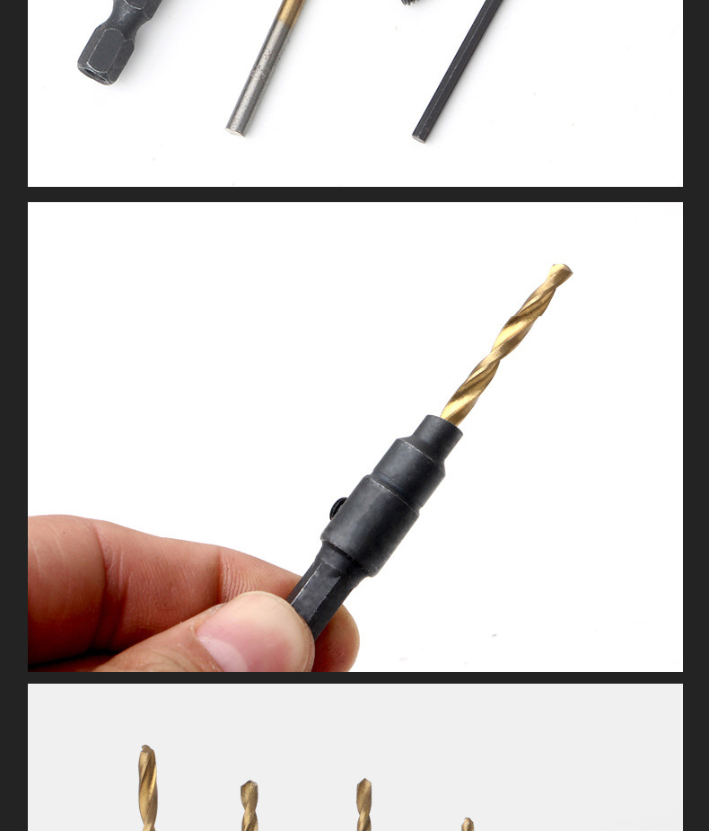 木工沉头麻花钻六角柄开孔器套装螺丝帽沉孔钻头倒角打孔一体钻头
