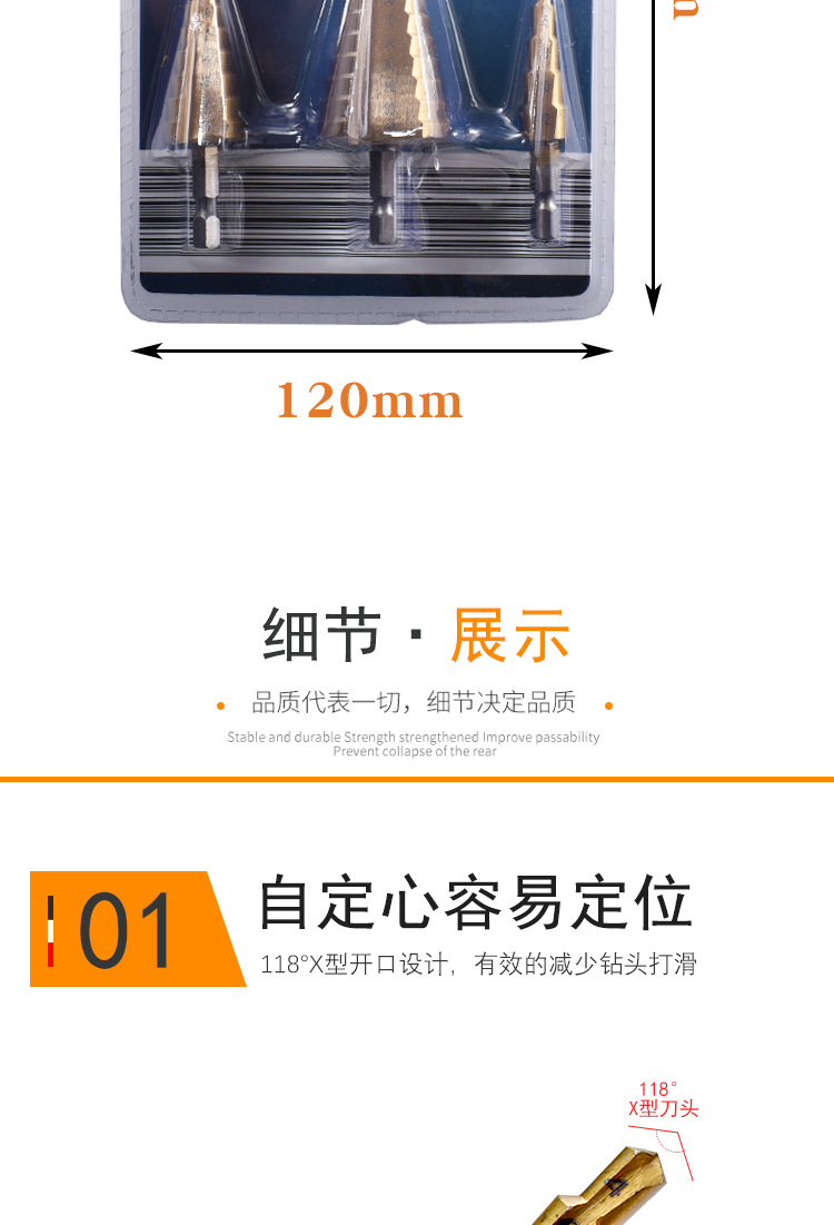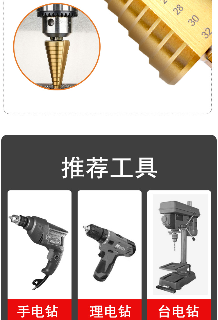 宝塔钻头六角柄直槽台阶钻手电钻扩孔木工工具套装阶梯钻