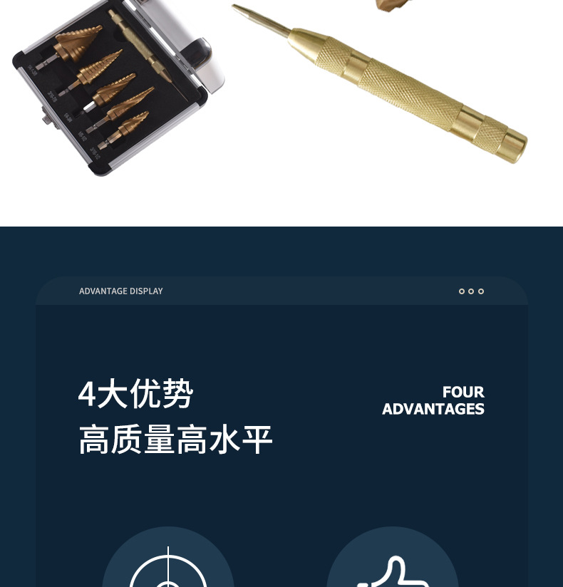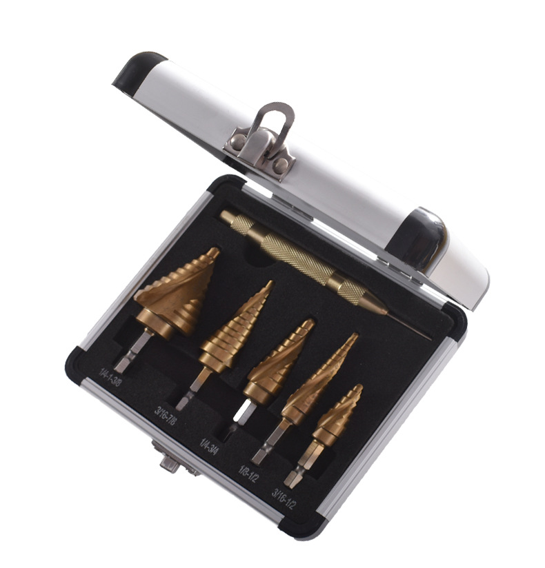 6pcs英制宝塔钻手电钻打孔工具螺旋阶梯钻头定位中心冲套装打洞