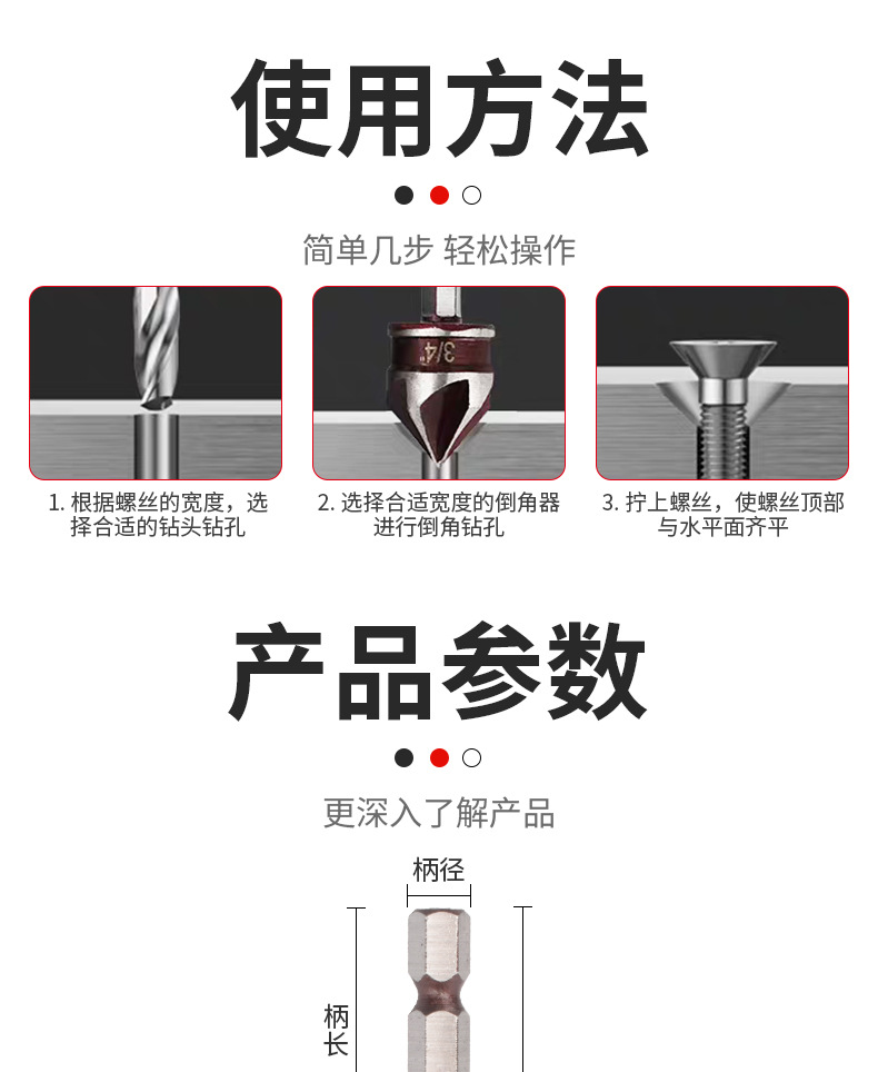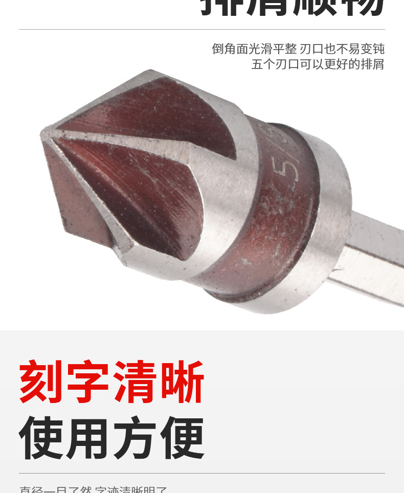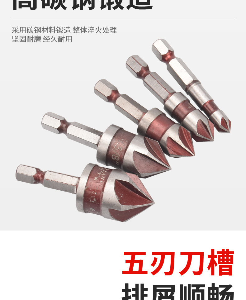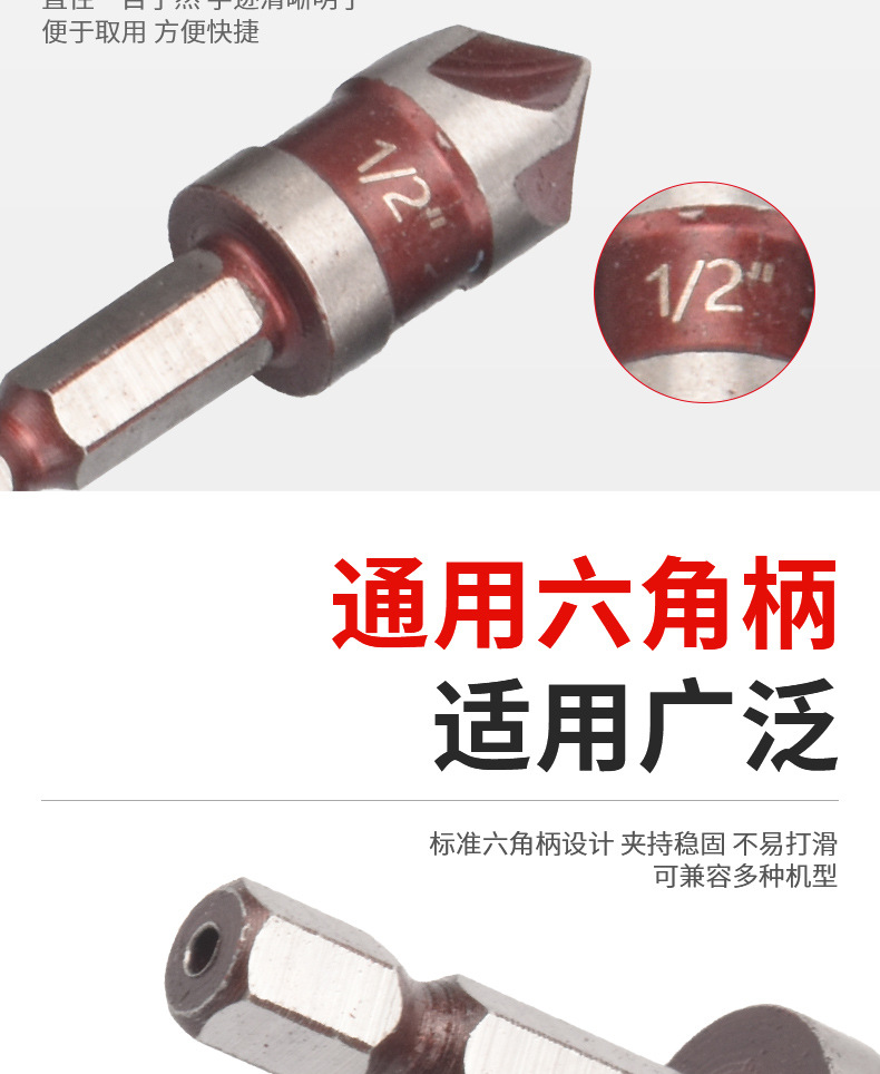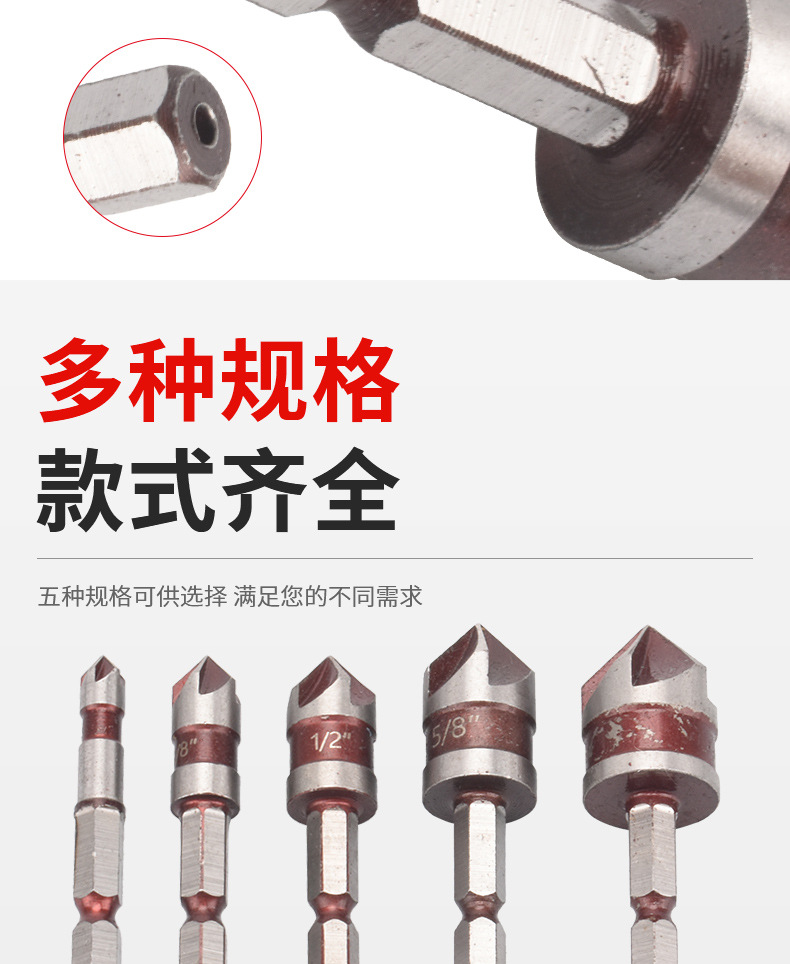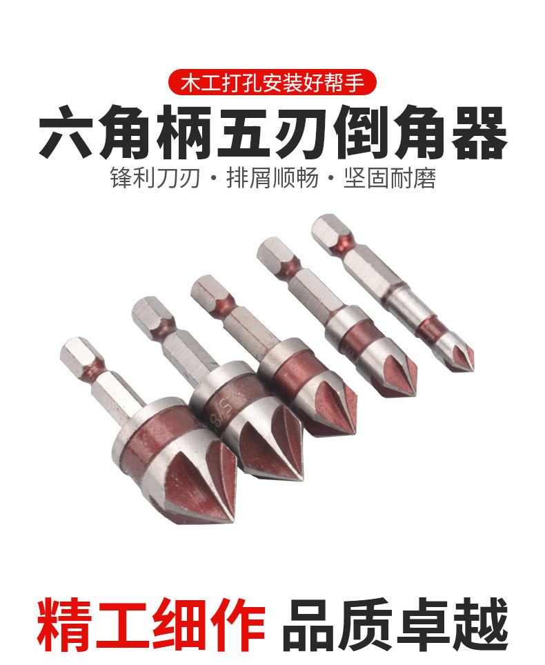 红色英制倒角器套装六角柄倒角刀电钻打孔去毛刺木工工具