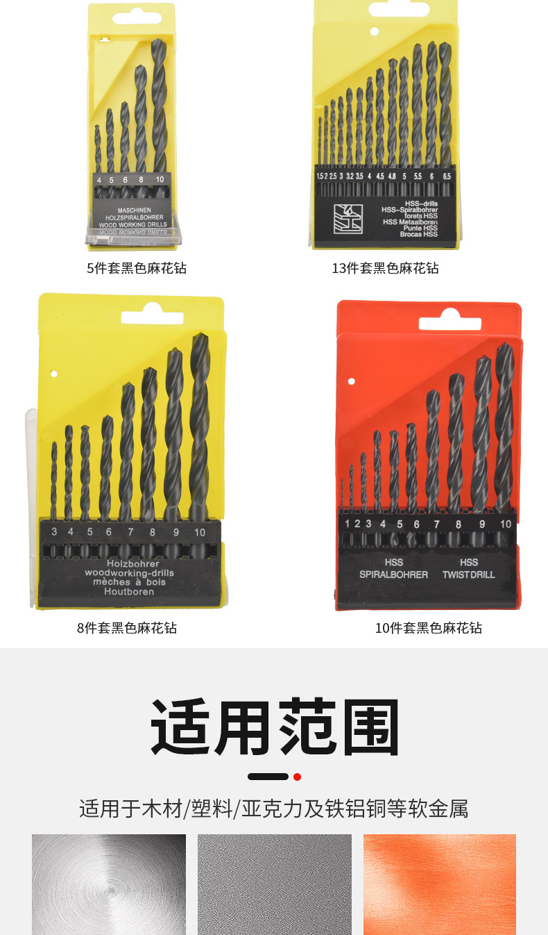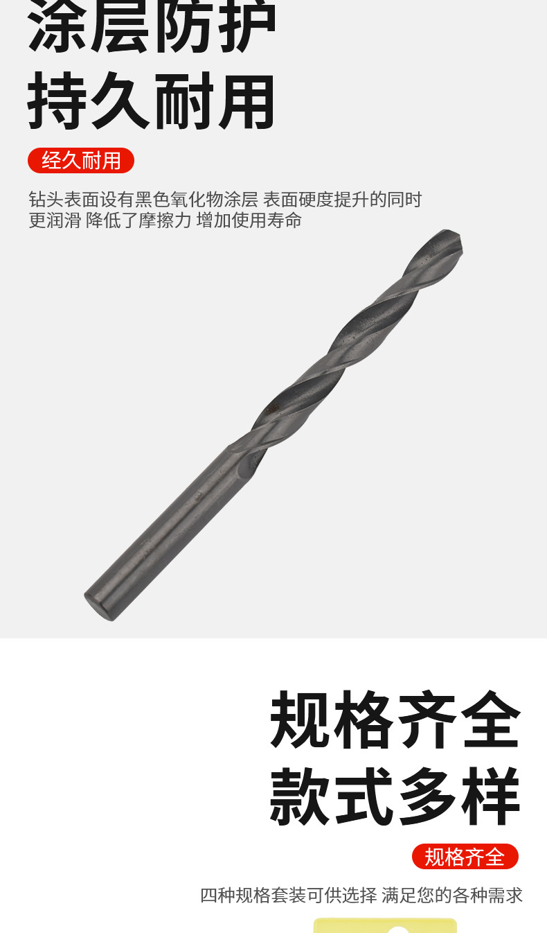 HSS黑色直柄麻花钻手电钻打孔铁皮塑料工具套装木工钻头