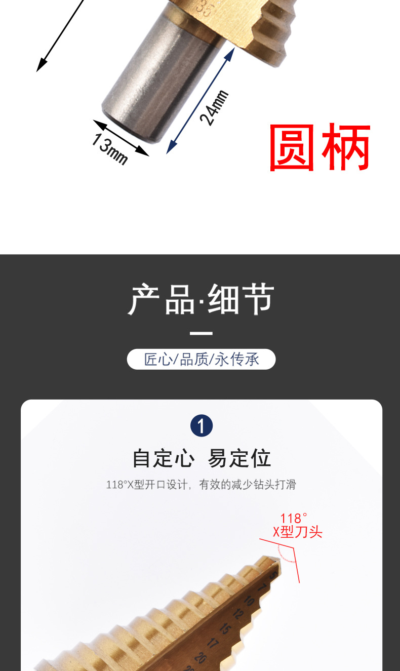 5-35宝塔钻金属打孔工具镀钛阶梯钻圆柄开孔器钻头手电钻