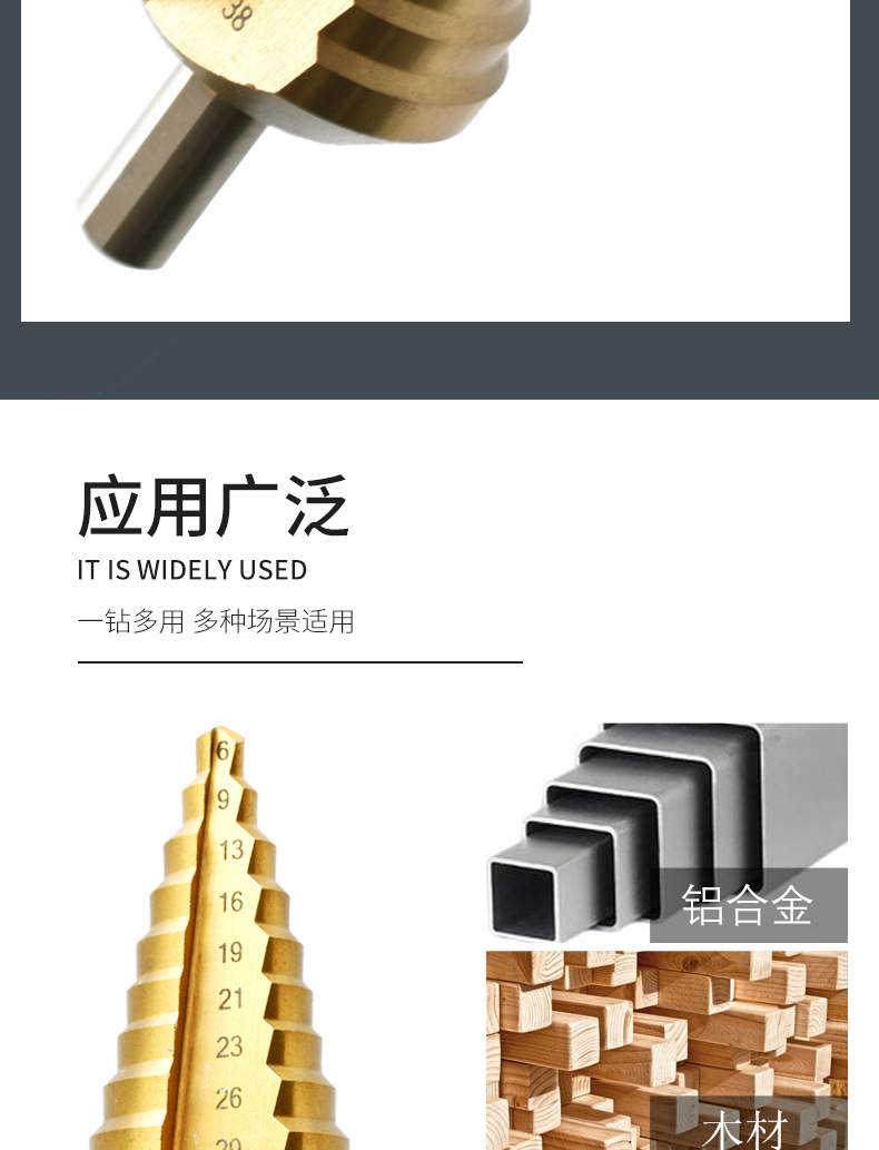 6-38mm阶梯钻三角柄直槽手电钻打孔工具台阶开孔器高速钢宝塔钻头