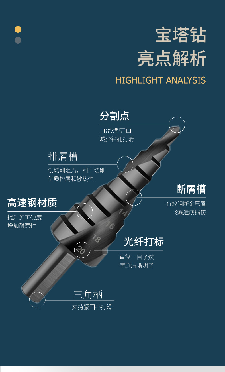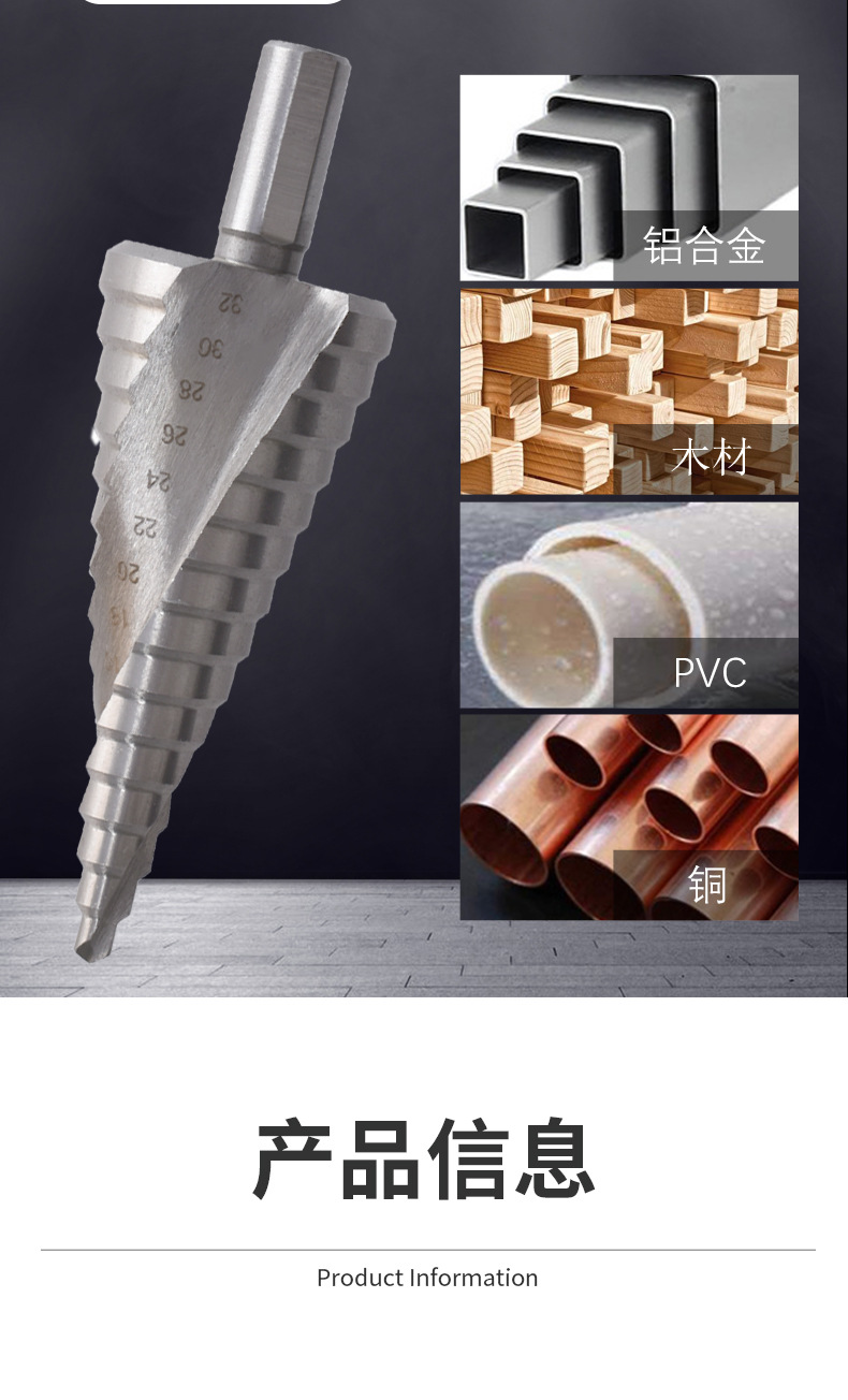 高速钢螺旋阶梯钻4-32mm扩孔宝塔钻手电钻打孔工具套装台阶钻头