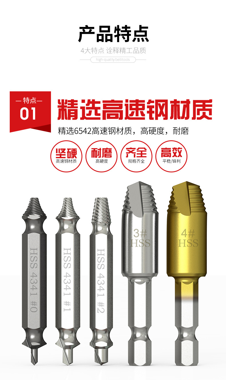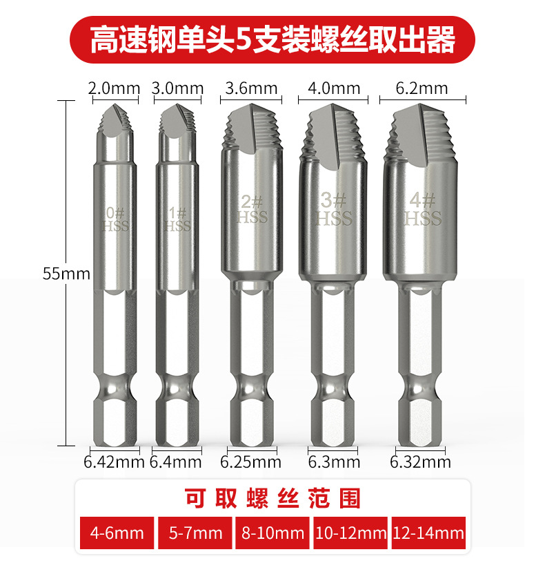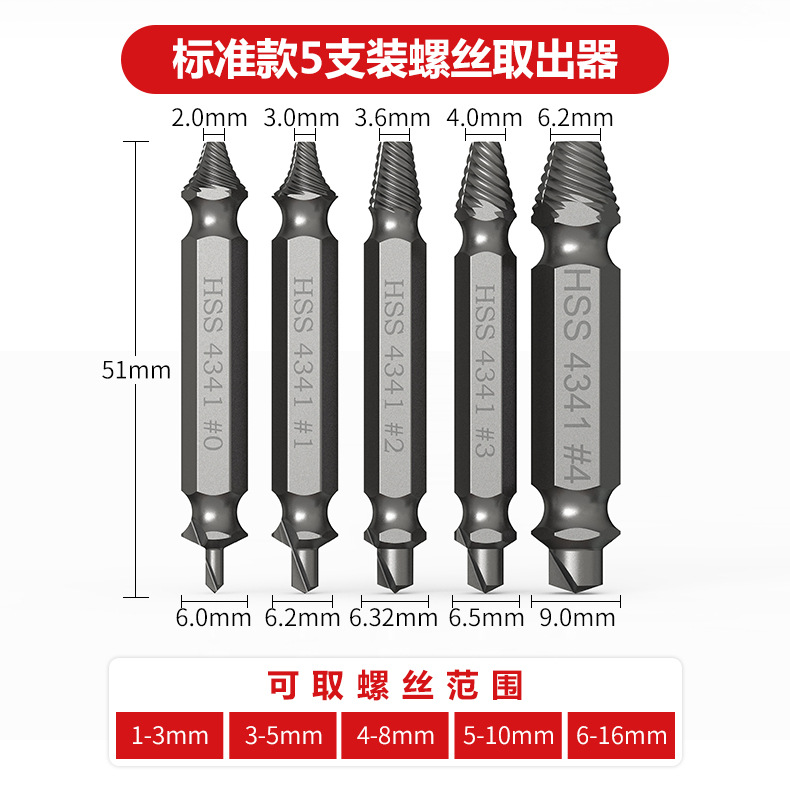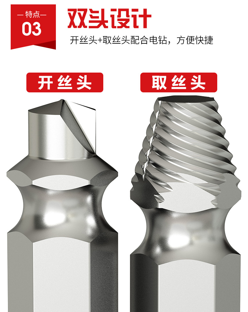 断丝取出器小号螺丝神器取断头工具取丝器高强度打滑双头套装