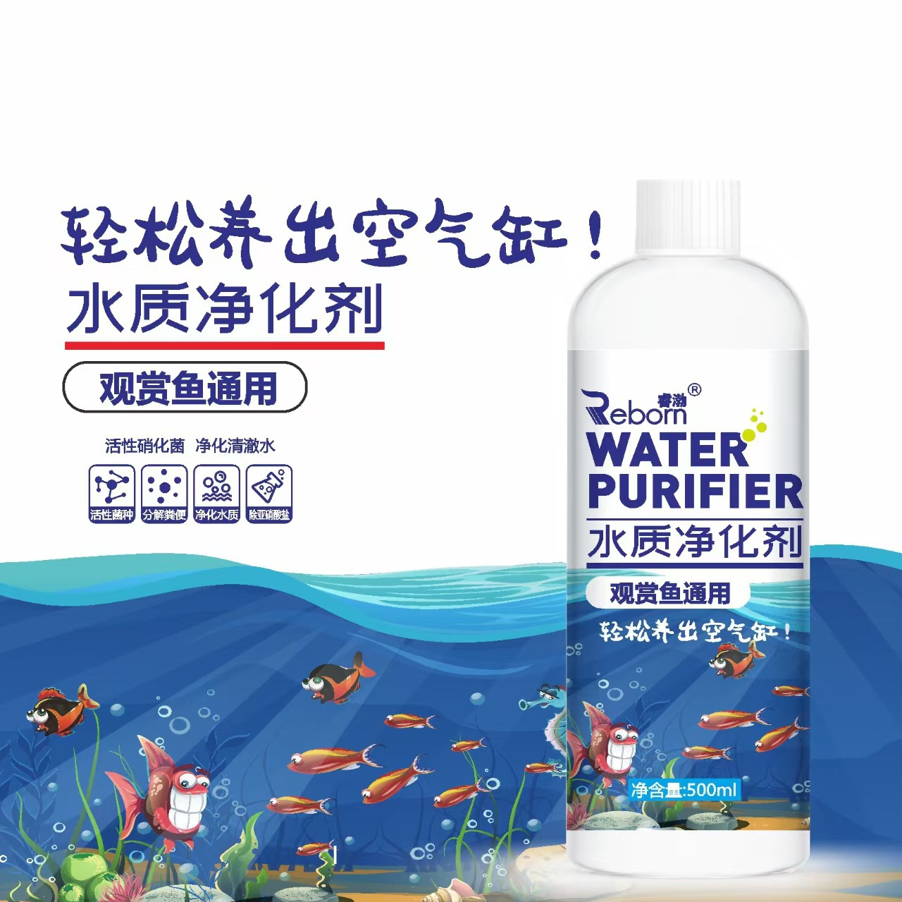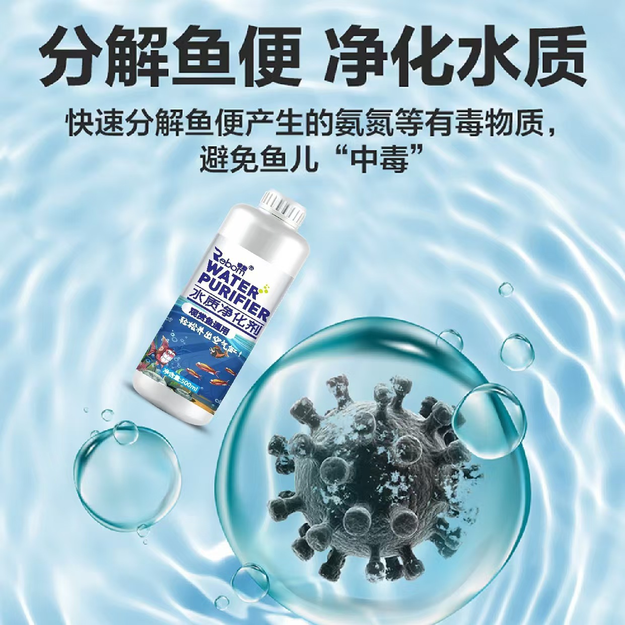 鱼缸水质净化剂家用观赏鱼粪便消毒剂室内水水族宠物水质净化液