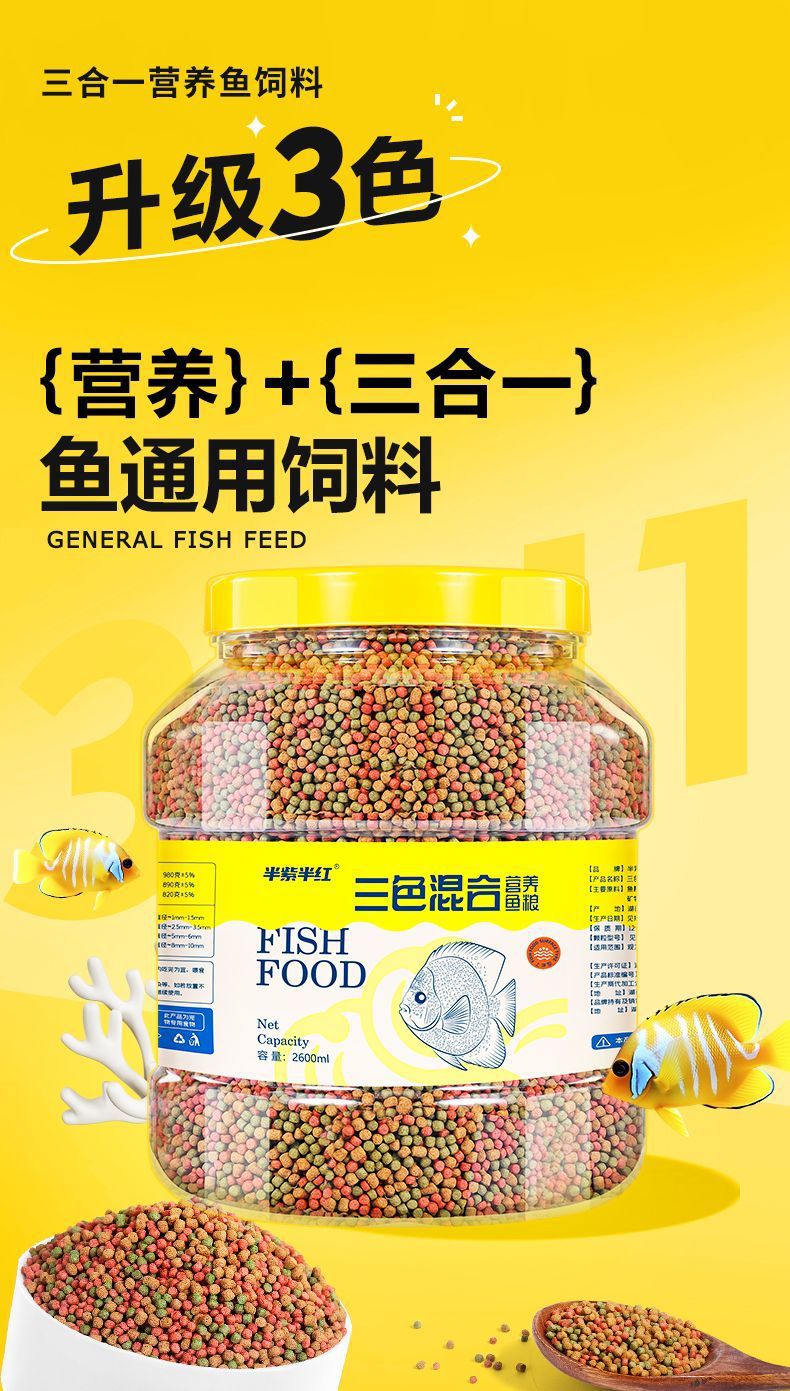三合一饲料颗粒不浑水上浮金鱼饲料观赏鱼鱼粮鲤鱼小袋鱼粮