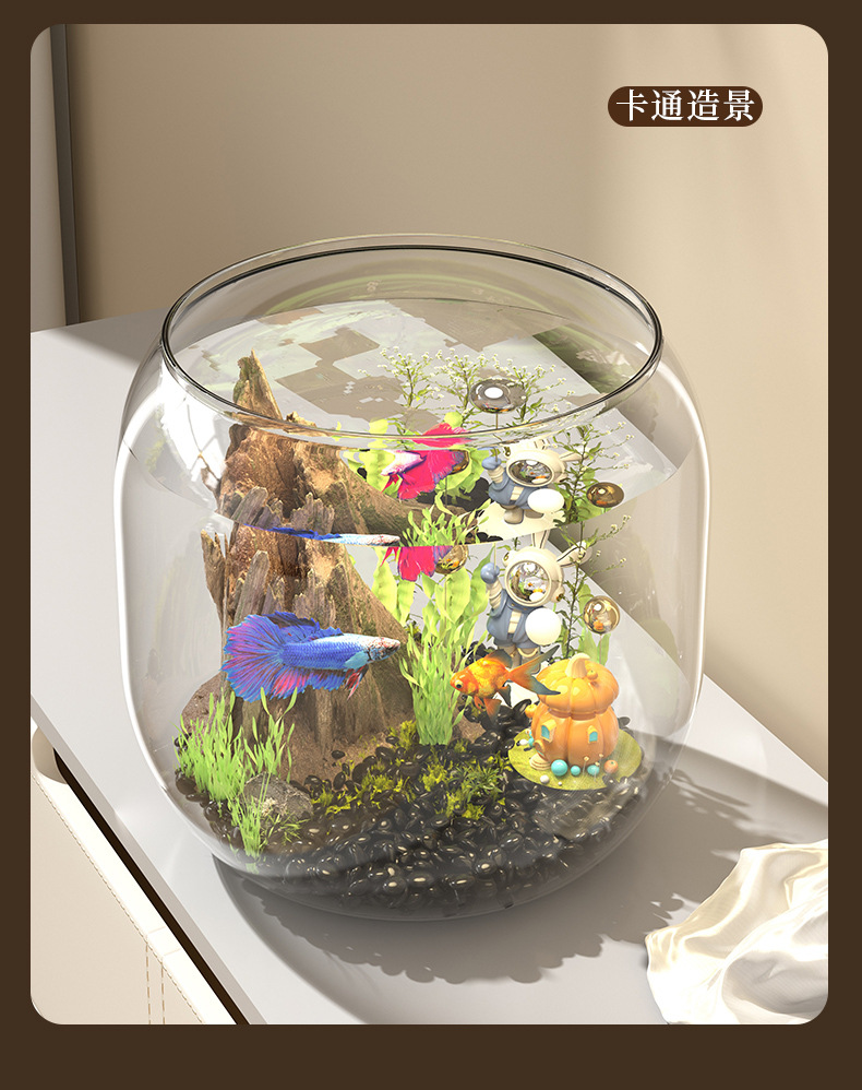 乌龟缸圆形塑料家用客厅透明生态造景金鱼绿植观赏鱼缸小型桌面