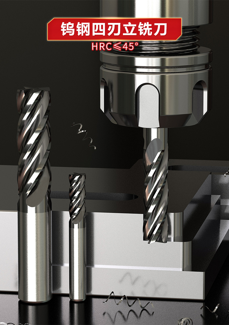 4刃钨钢铣刀数控硬质合金刀具加长不锈钢直柄立铣刀45度