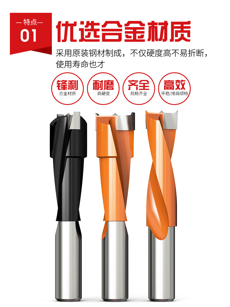 工业级木工排钻三合一钻头合金排钻钻咀三尖两刃木工开孔器正反钻