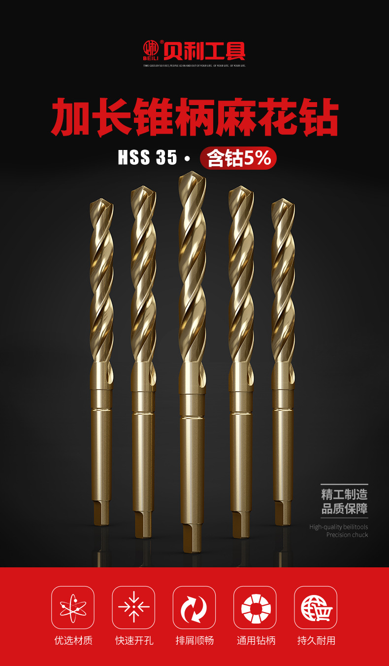 含钴锥柄加长麻花钻头莫氏柄高速钢M2特长300/400/500钻孔扩孔钻