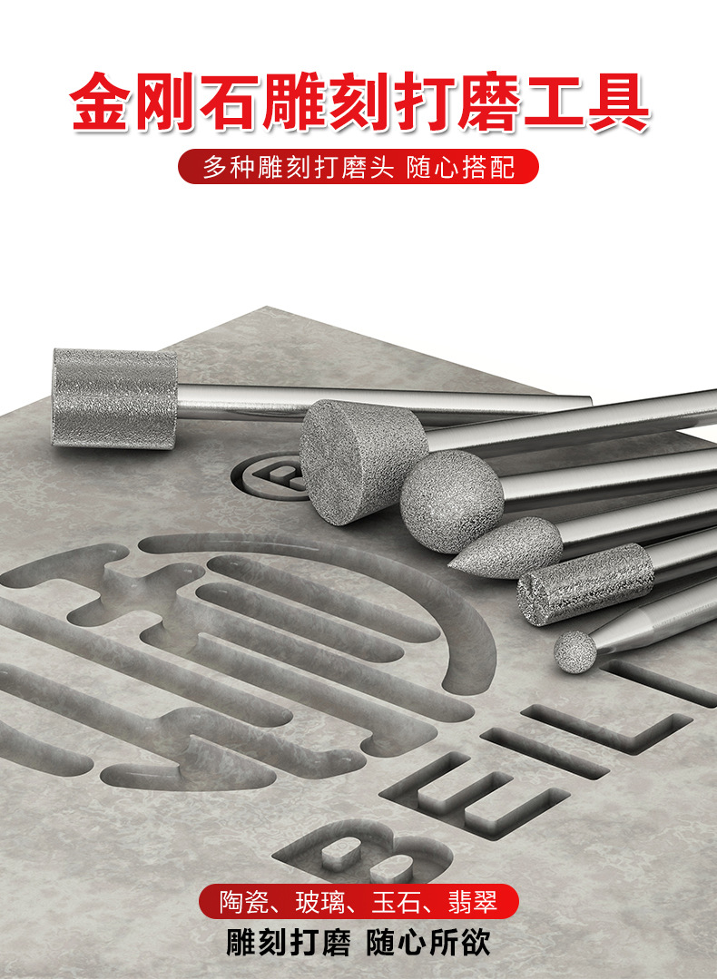 金刚石磨头石英玉石翡翠去皮石材雕刻打磨头粗砂6mm柄电磨磨