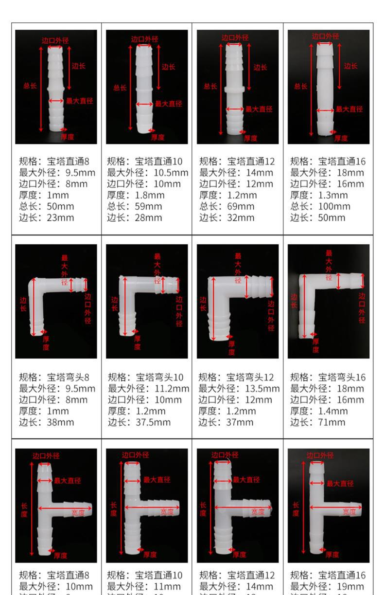 软管接头L型T型宝塔弯头三通塑料胶管连接管件PVC水管配件