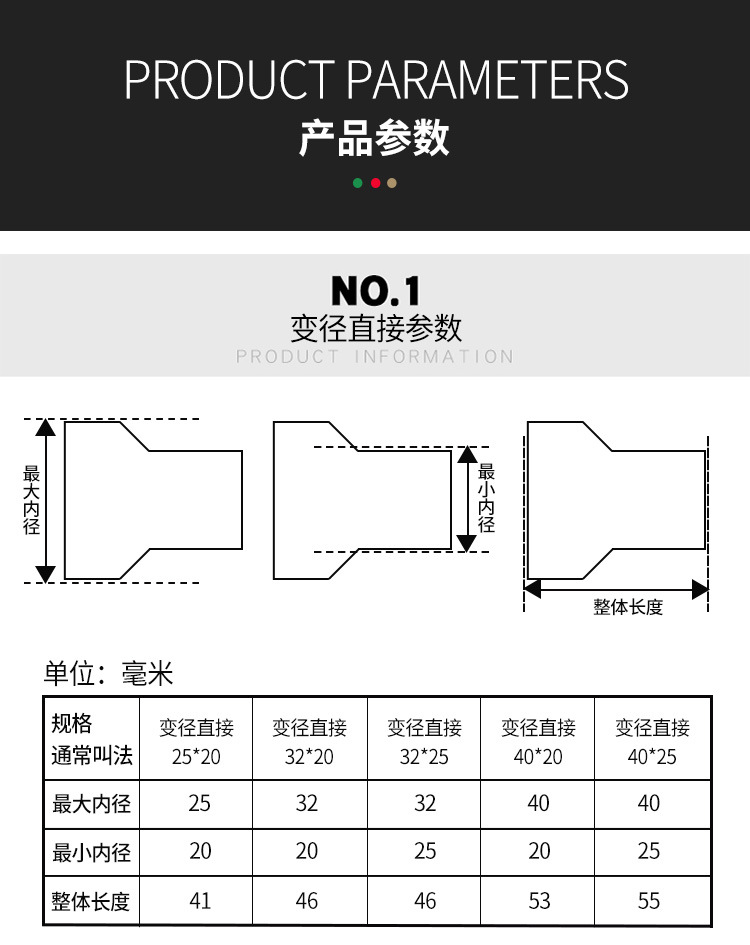 pvc直接大变小接头异径直通2025324050110塑料自来给水管配件