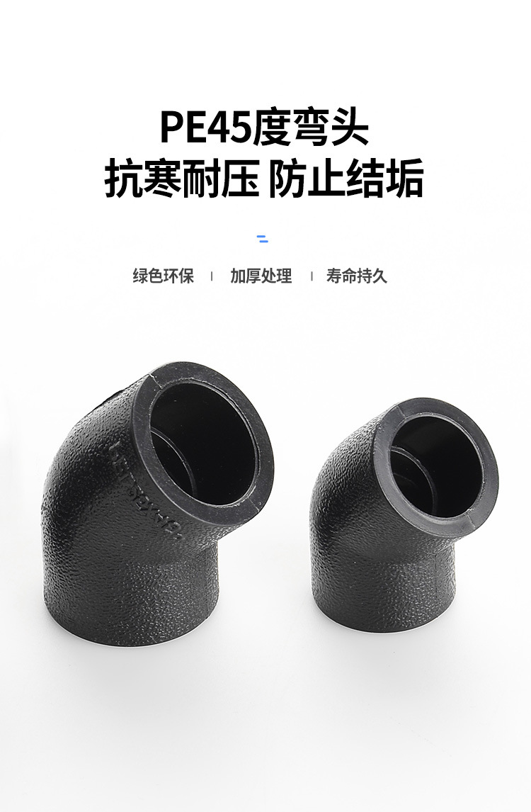 pe弯头45度接头热熔管件20253250631104分黑色自来水管配件给水管