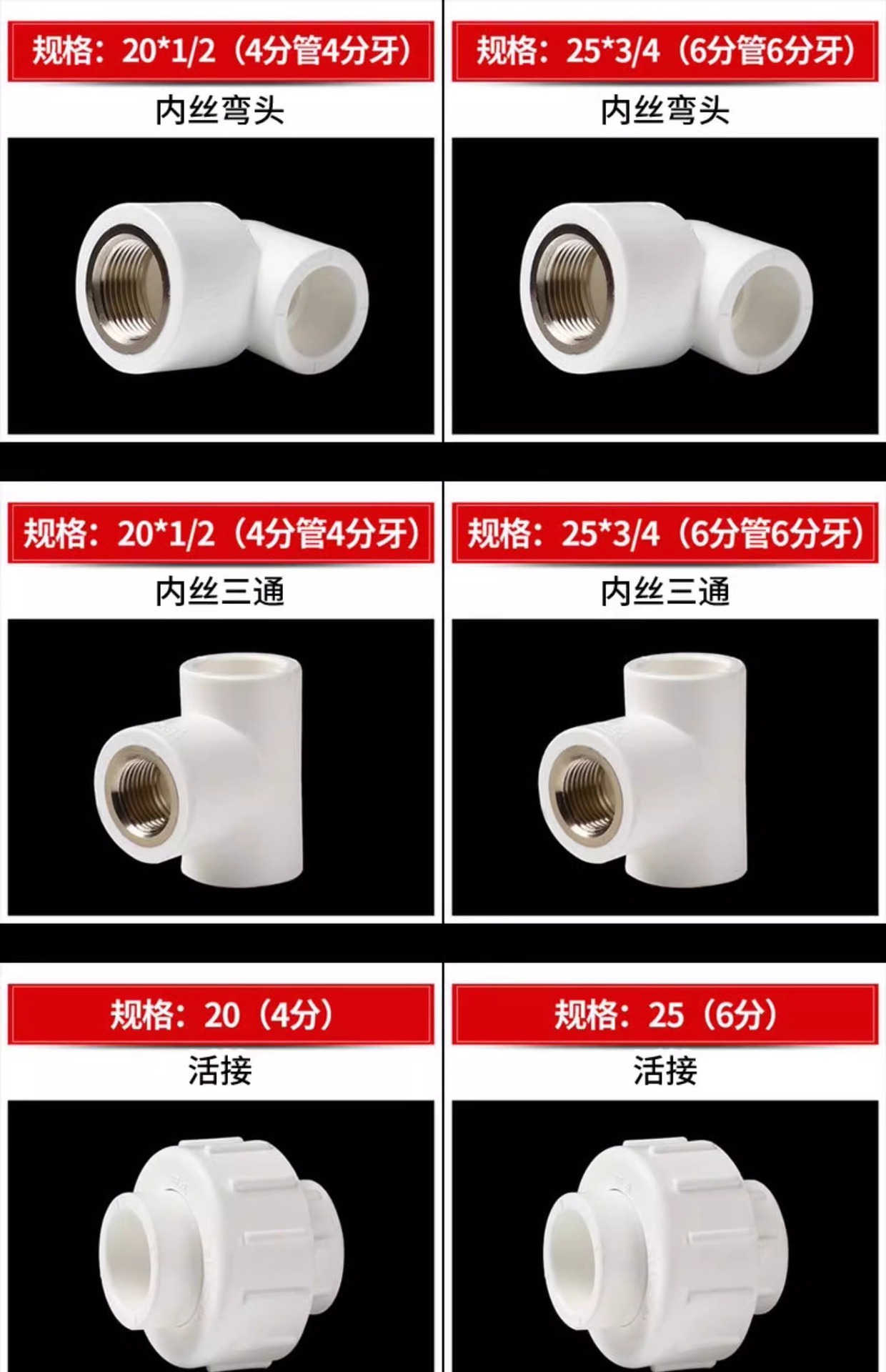 联塑pvc水管配件粘胶4/6分内丝直通弯头异径三通管卡直接球阀管材