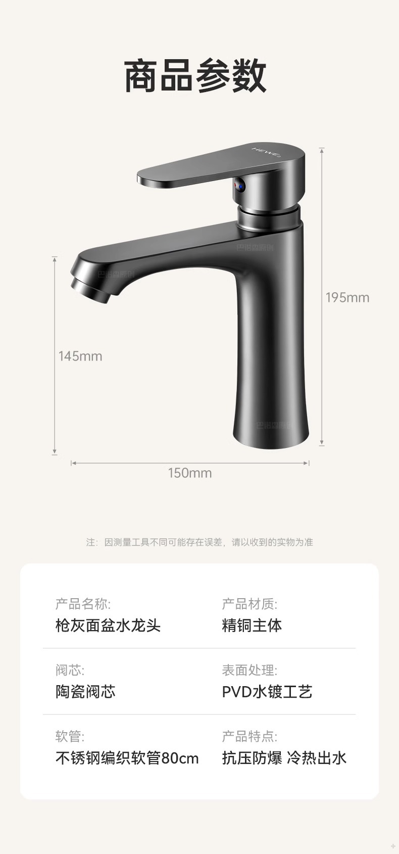 - 飞翔款【枪灰色●冷热款】全铜加厚●加长出水●节水不飞溅