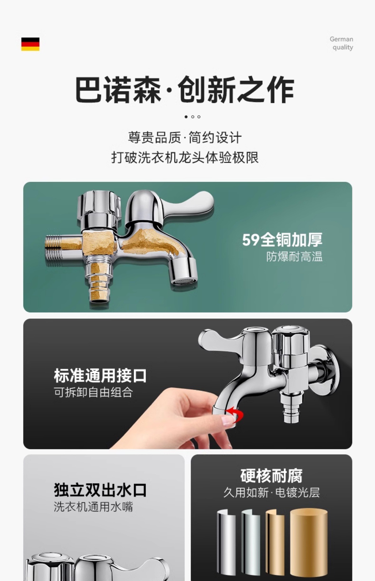 - 特厚精铜-双出水龙头(4分新型螺纹口+4分)