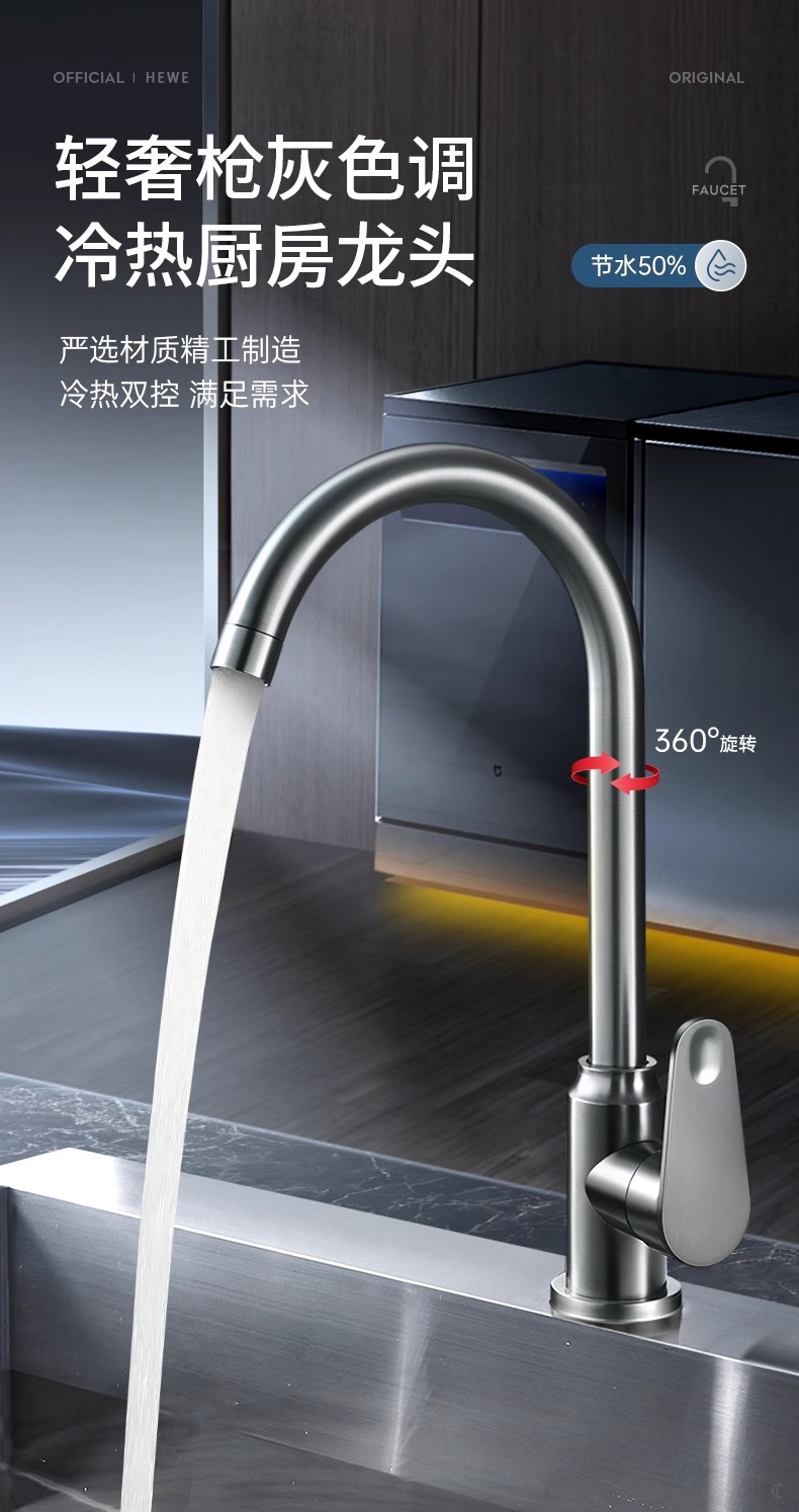 - 德系正品【单冷款●枪灰】全铜1档●万向旋转防溅●50年质保