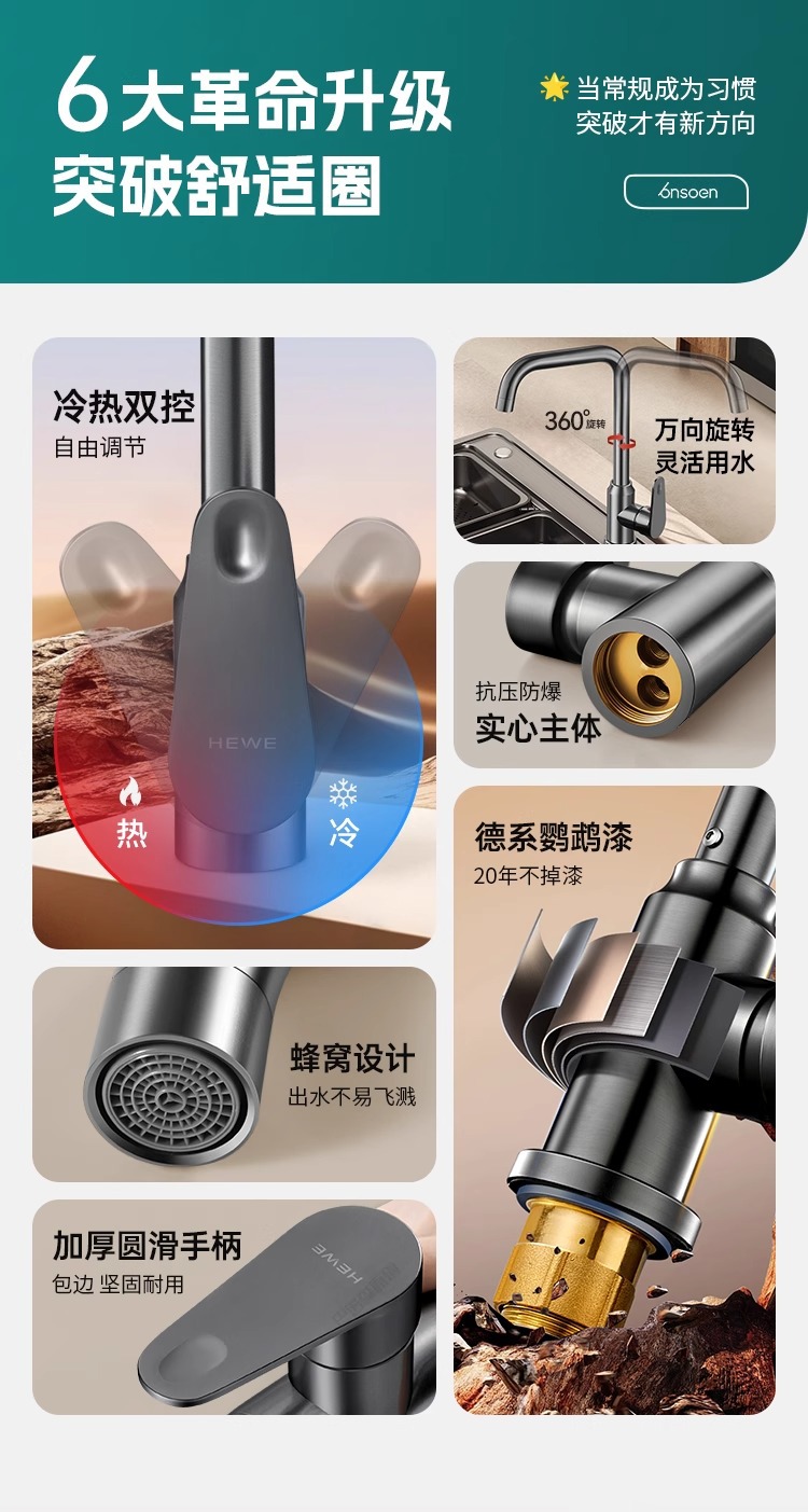 - 全铜加厚【枪灰两档◆七字款】冷热双控◆万向旋转◆大角度用水