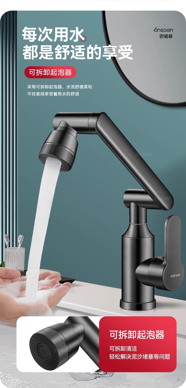 全铜机械臂万向旋转水龙头冷热洗手盆厨房洗菜盆卫生间洗脸盆家用