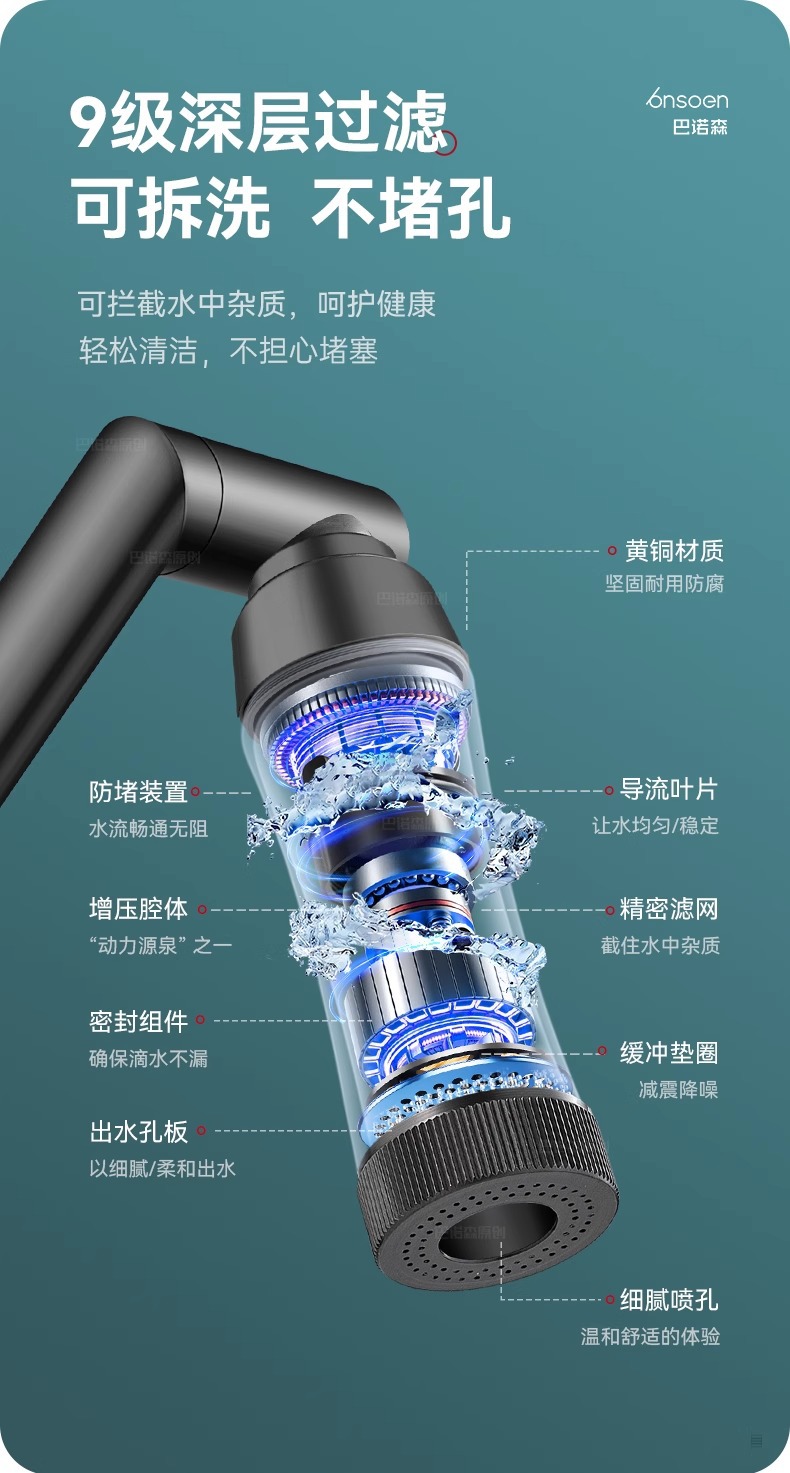 - 全铜加厚【银色-七字款】冷热三档●1440°万向旋转●增压防溅