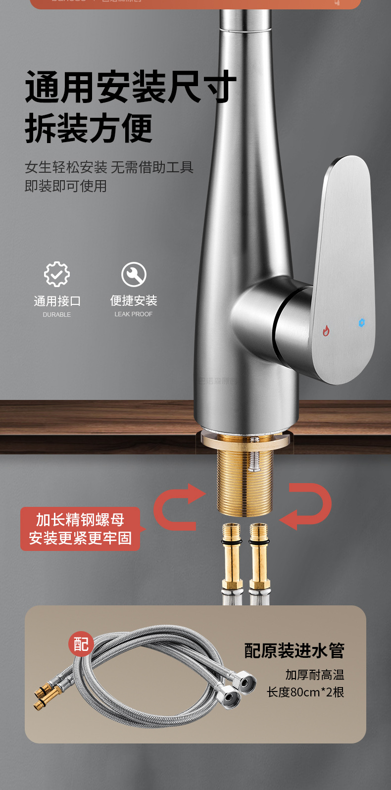304不锈钢厨房水龙头家用冷热两用防溅水伸缩洗菜盆洗碗池水龙头