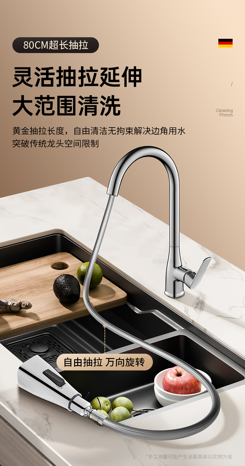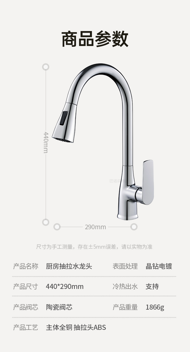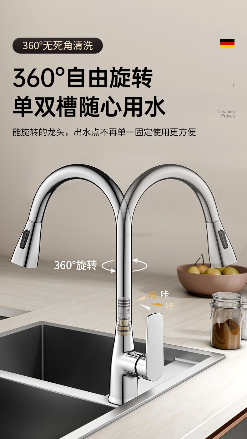 厨房抽拉式水龙头洗菜盆水槽冷热两用抽拉式万向旋转可伸缩防溅水