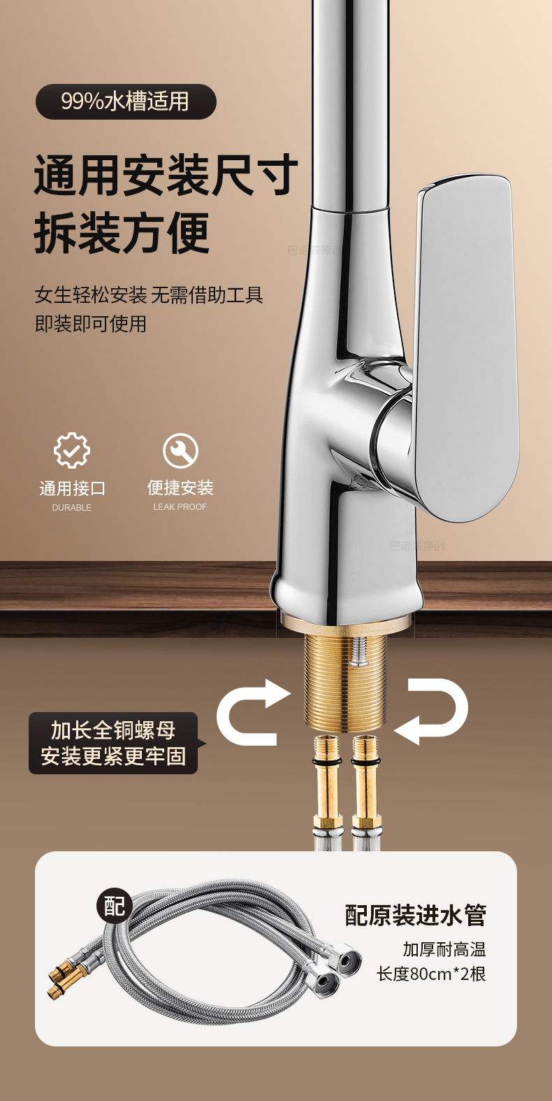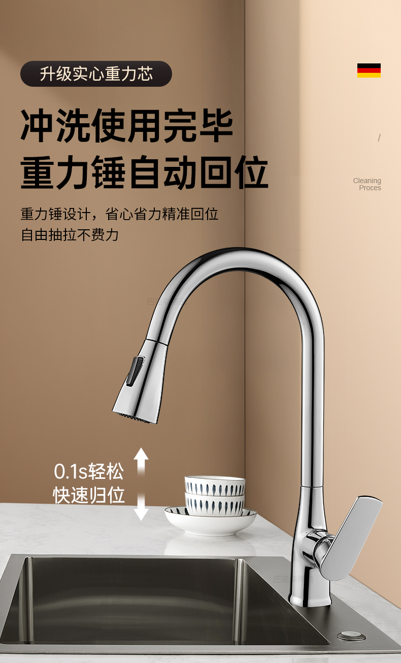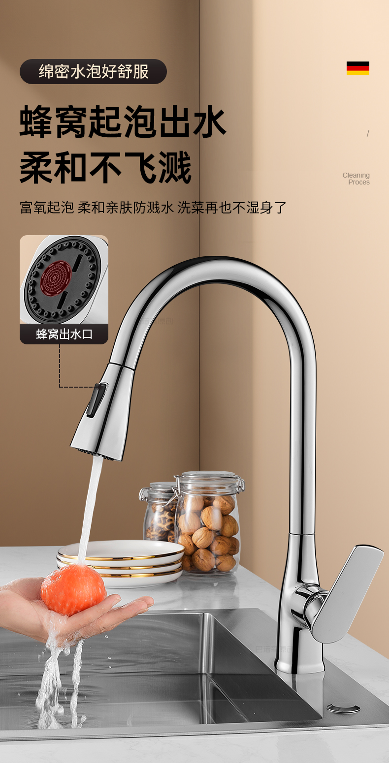厨房抽拉式水龙头洗菜盆水槽冷热两用抽拉式万向旋转可伸缩防溅水