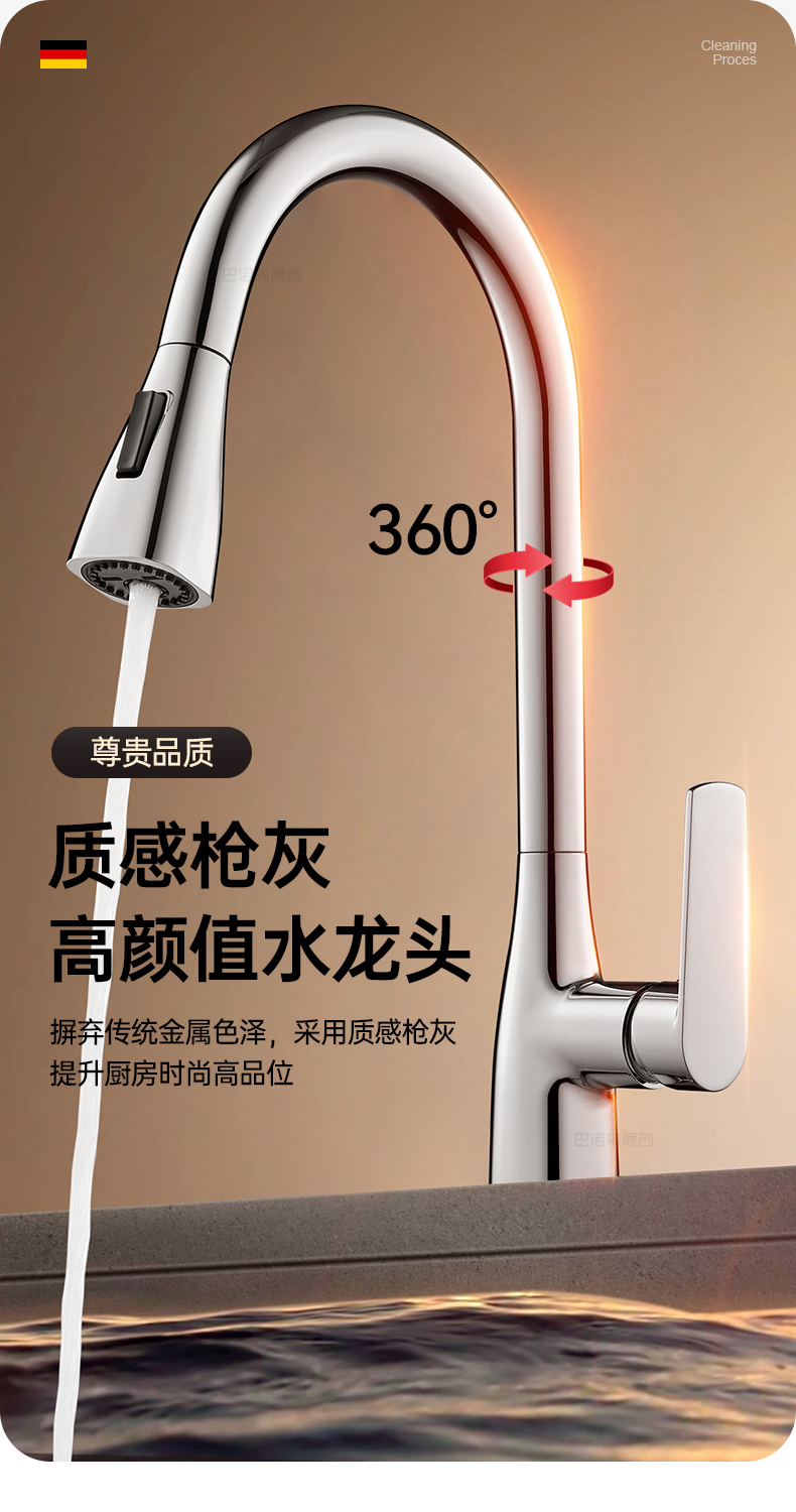【轻奢灰】全铜两档抽拉◆万向旋转◆防溅水(质保20年)