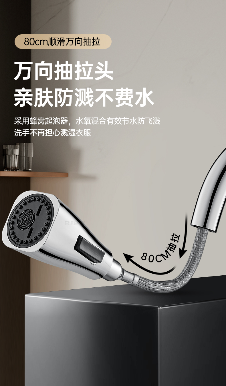 【雅光黑】全铜两档抽拉◆万向旋转◆防溅水(质保20年)