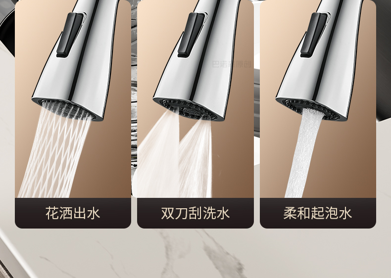 【雅光黑】全铜三档抽拉◆万向旋转◆防溅水(质保20年)
